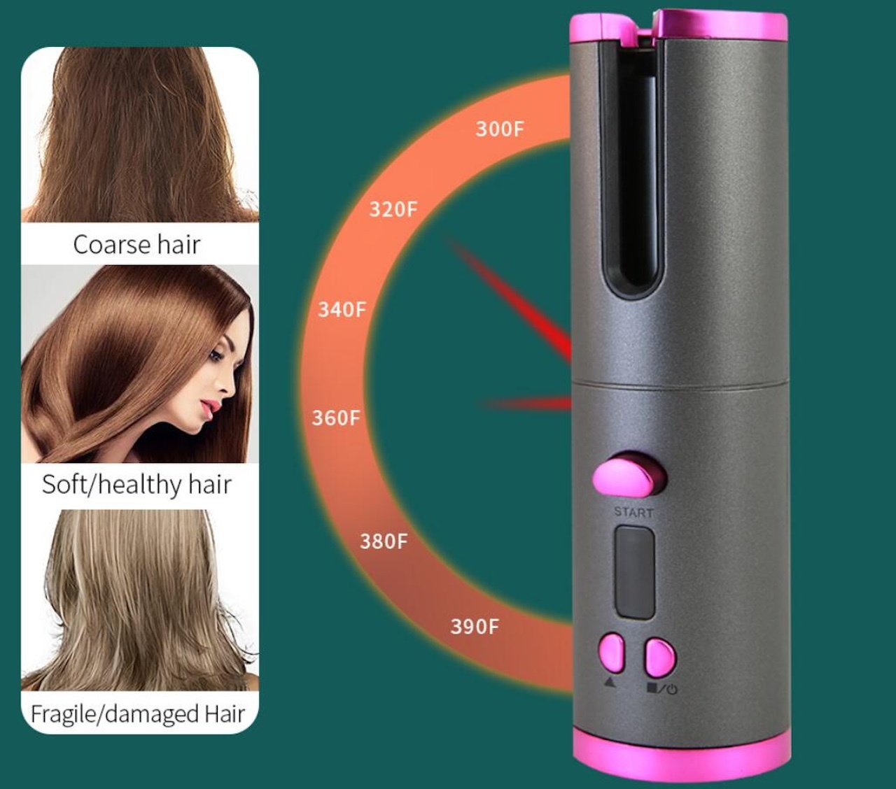 Revolutioner måten du styler håret på med vår trådløse USB krølltang. Med en avansert keramisk turmalinvarmeplate oppnår du raskt flotte og skinnende krøller, på bare 8–18 sekunder per seksjon. Takket være dens trådløse design og raske oppvarmingstid, er den perfekt for effektiv styling hvor som helst. Bruksprosessen er enkel: del håret i seksjoner, pek skjermen mot håret og plasser en lokk mot åpningen. Krølltangen tar automatisk opp håret og skaper perfekte krøller. For profesjonelle resultater hjemme, er vår krølltang det ultimate valget.