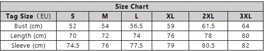Størrelsesguide EU (bryst, lengde, erme)