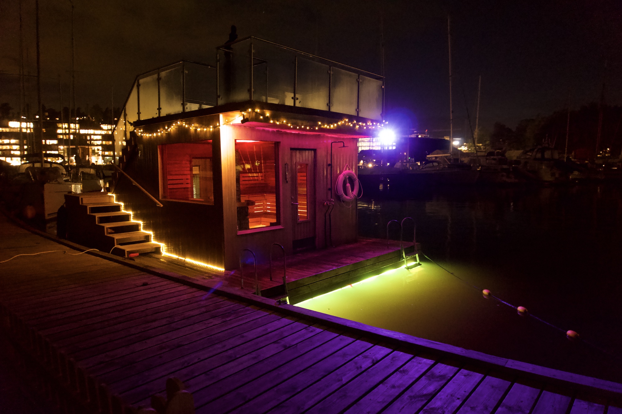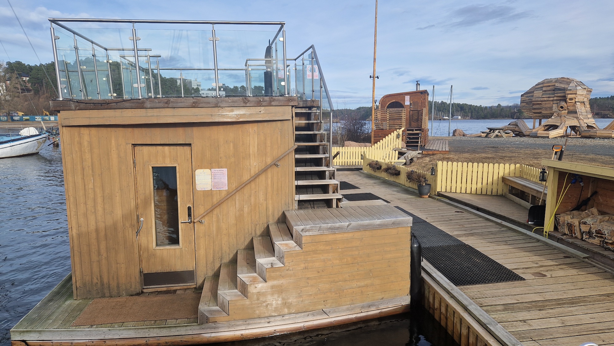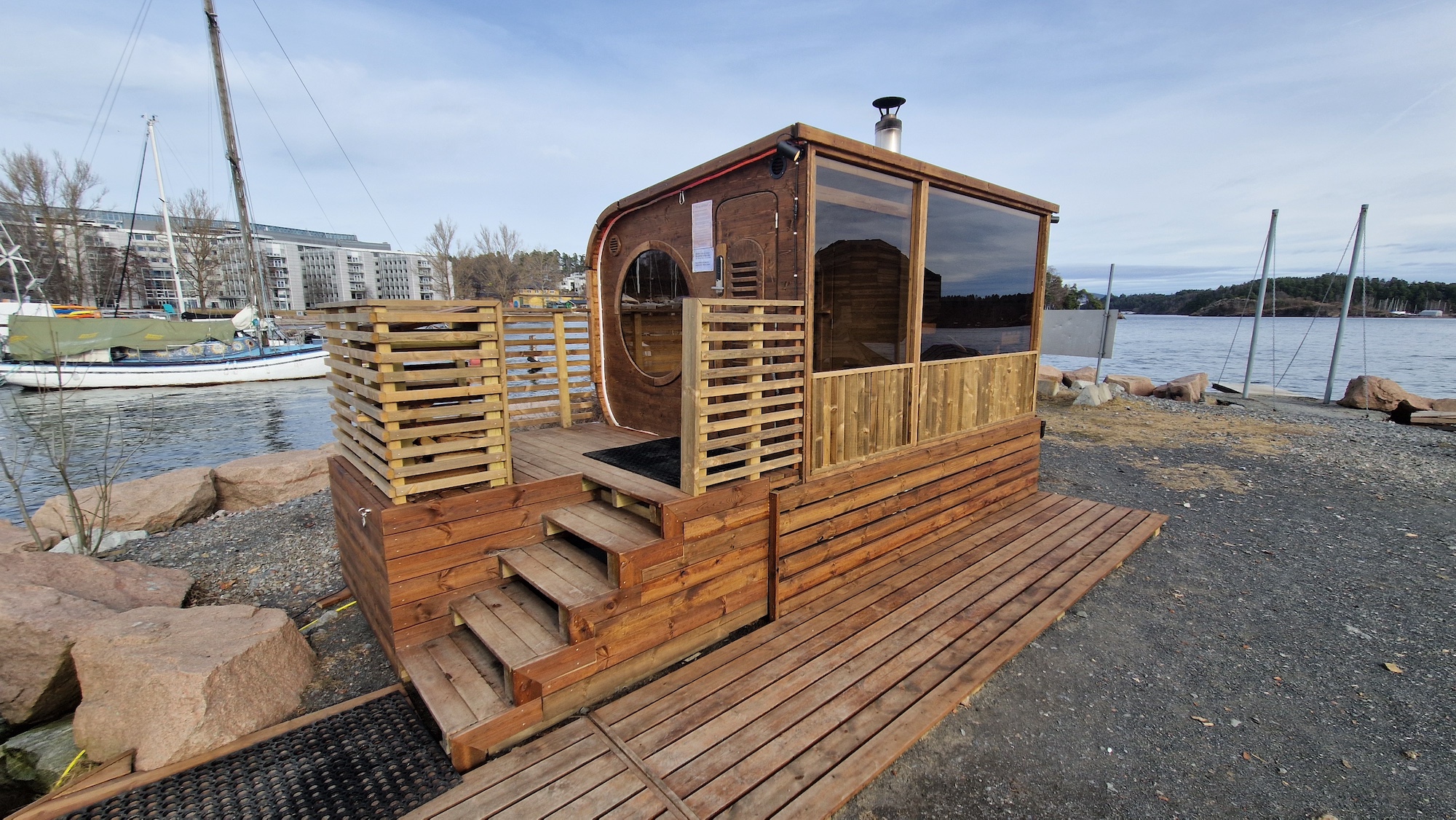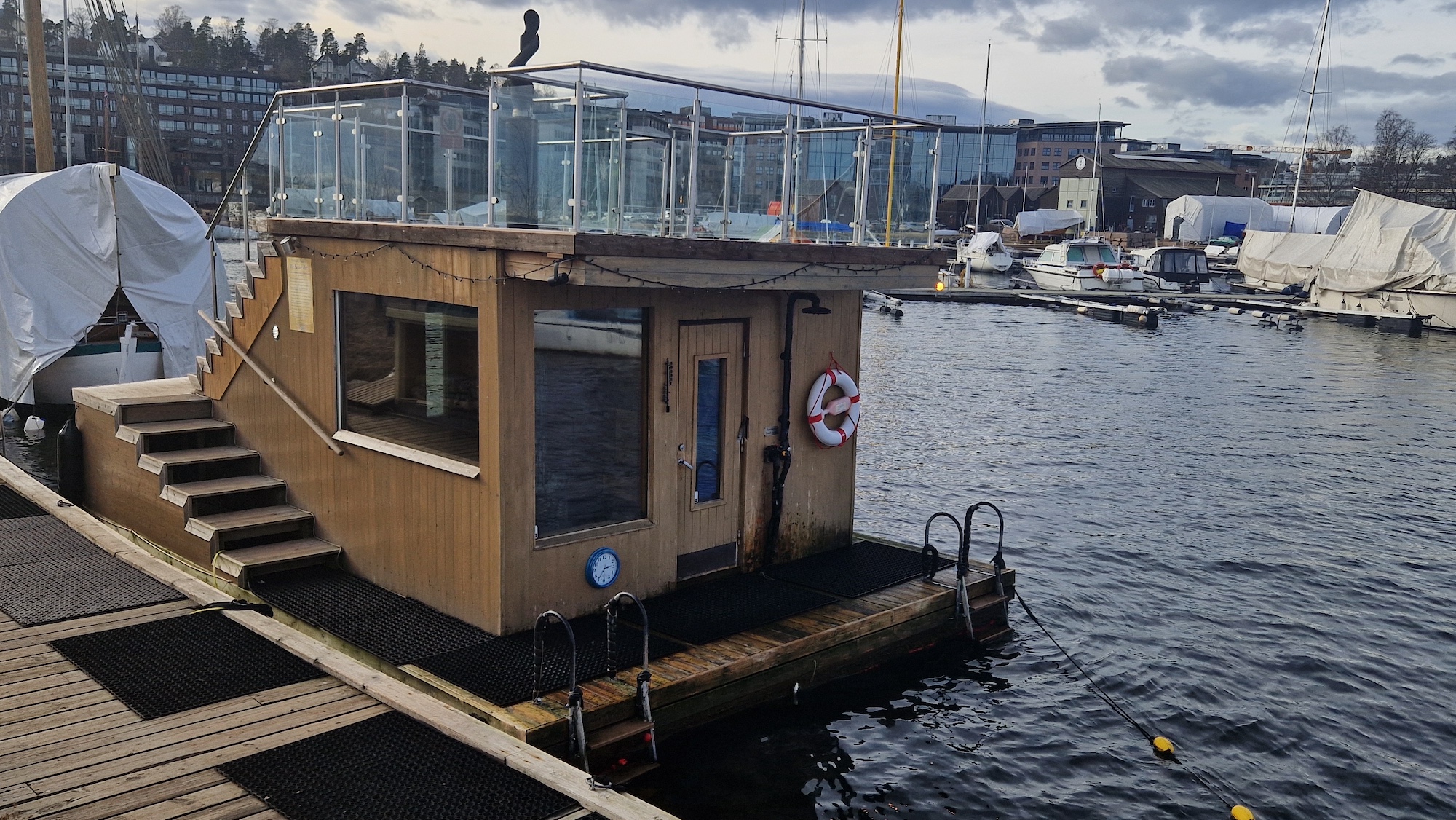 Fjordtokts badstu ligger ute på moloen på Sollerud, fem minutters gange fra Lysaker stasjon, rett utenfor Oslo sentrum.