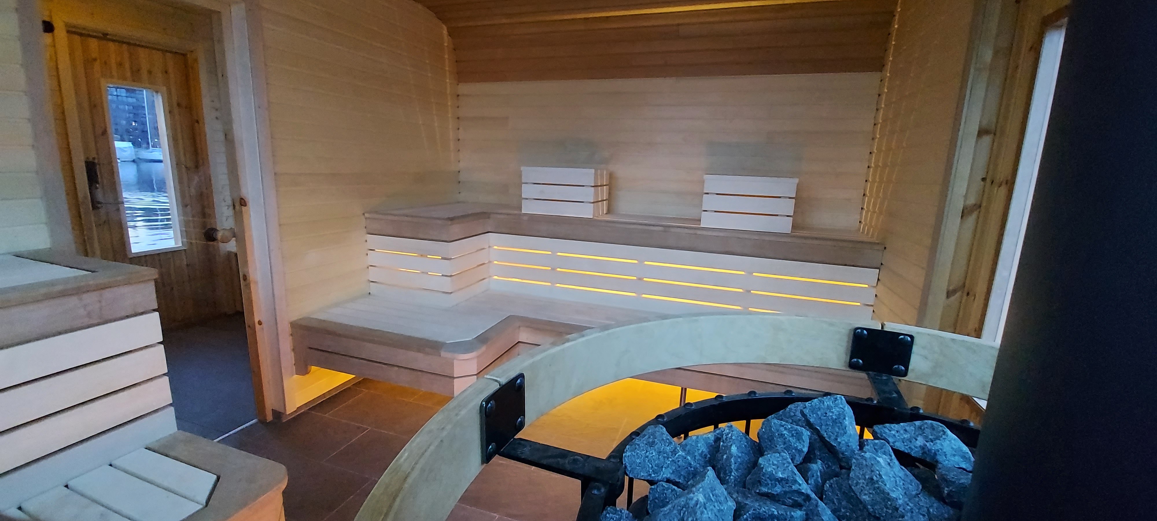 - Opptil 8 gjester på drop-in i stor badstue og 6 gjester på drop-in i liten badstue