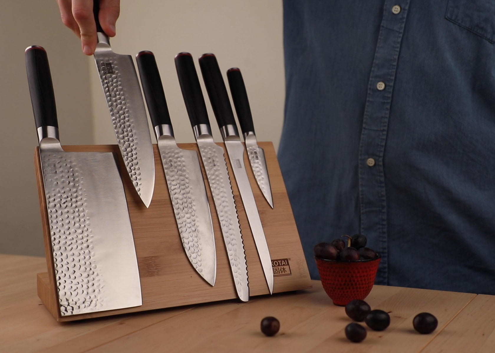 Håndvask, tørk etter vask; tørk knivene før du setter dem på bambusholderen