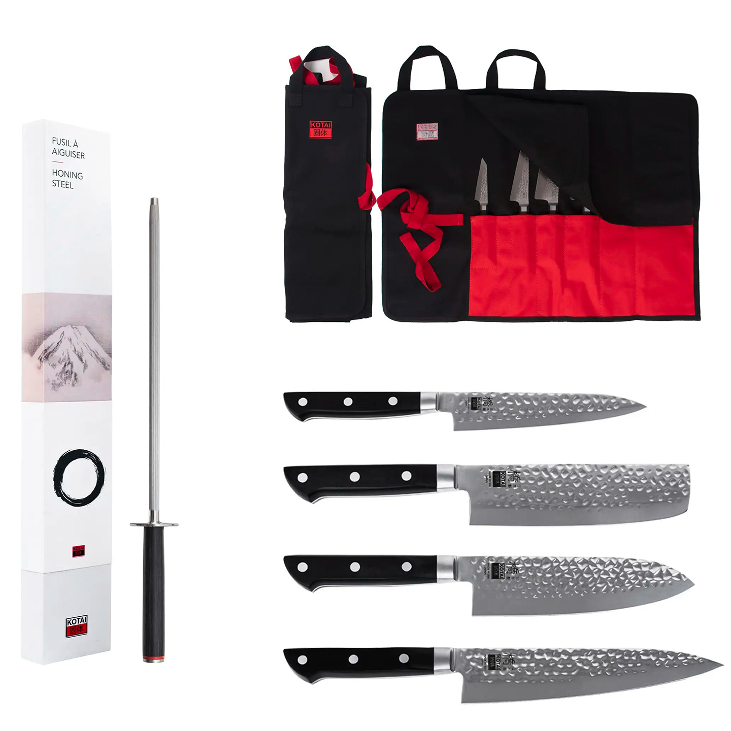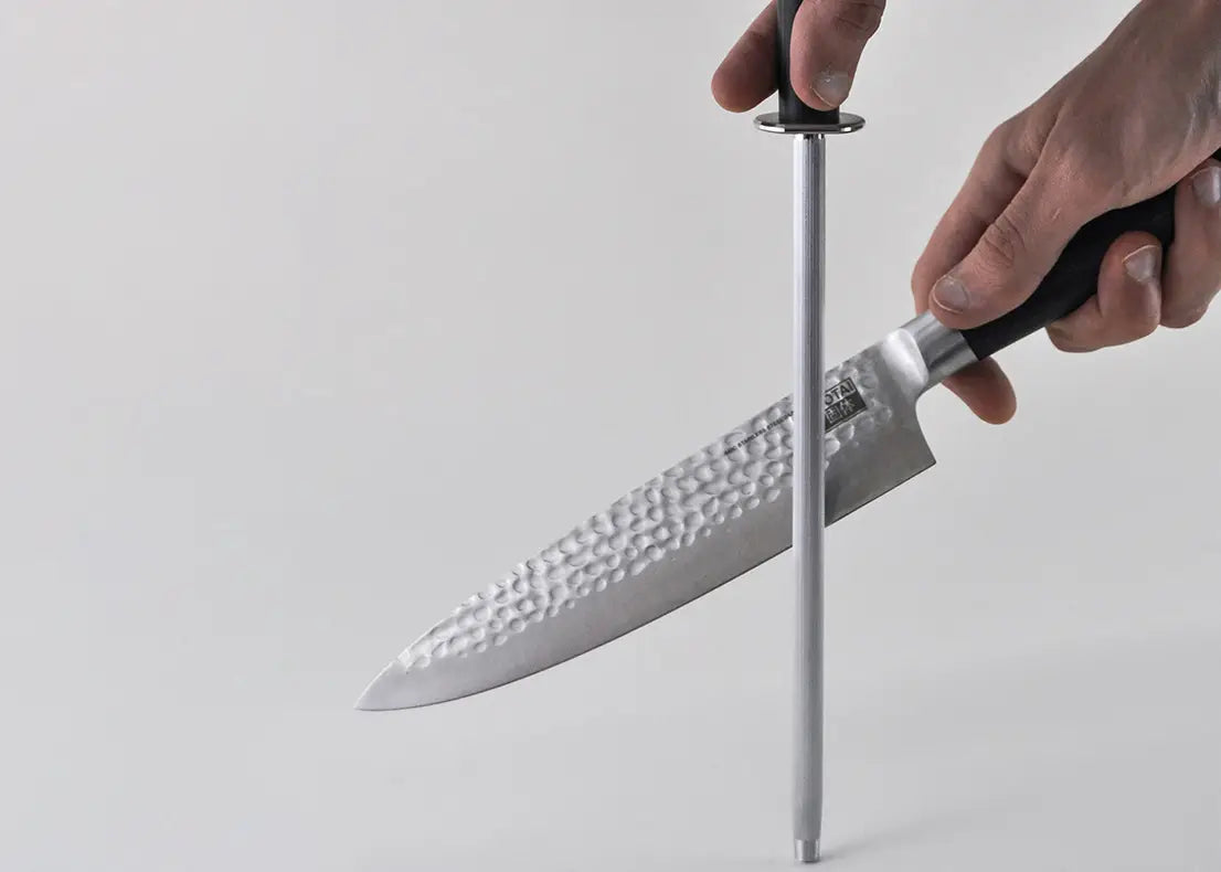 Japansk molybden rustfritt stål, med sitt høyere enn gjennomsnittlige karboninnhold, hjelper bladet med å beholde skarpheten lenger enn vanlige kniver. Tilsetningen av krom til legeringsstålet gjør bladet rustfritt, enkelt å bruke og lett å vedlikeholde.