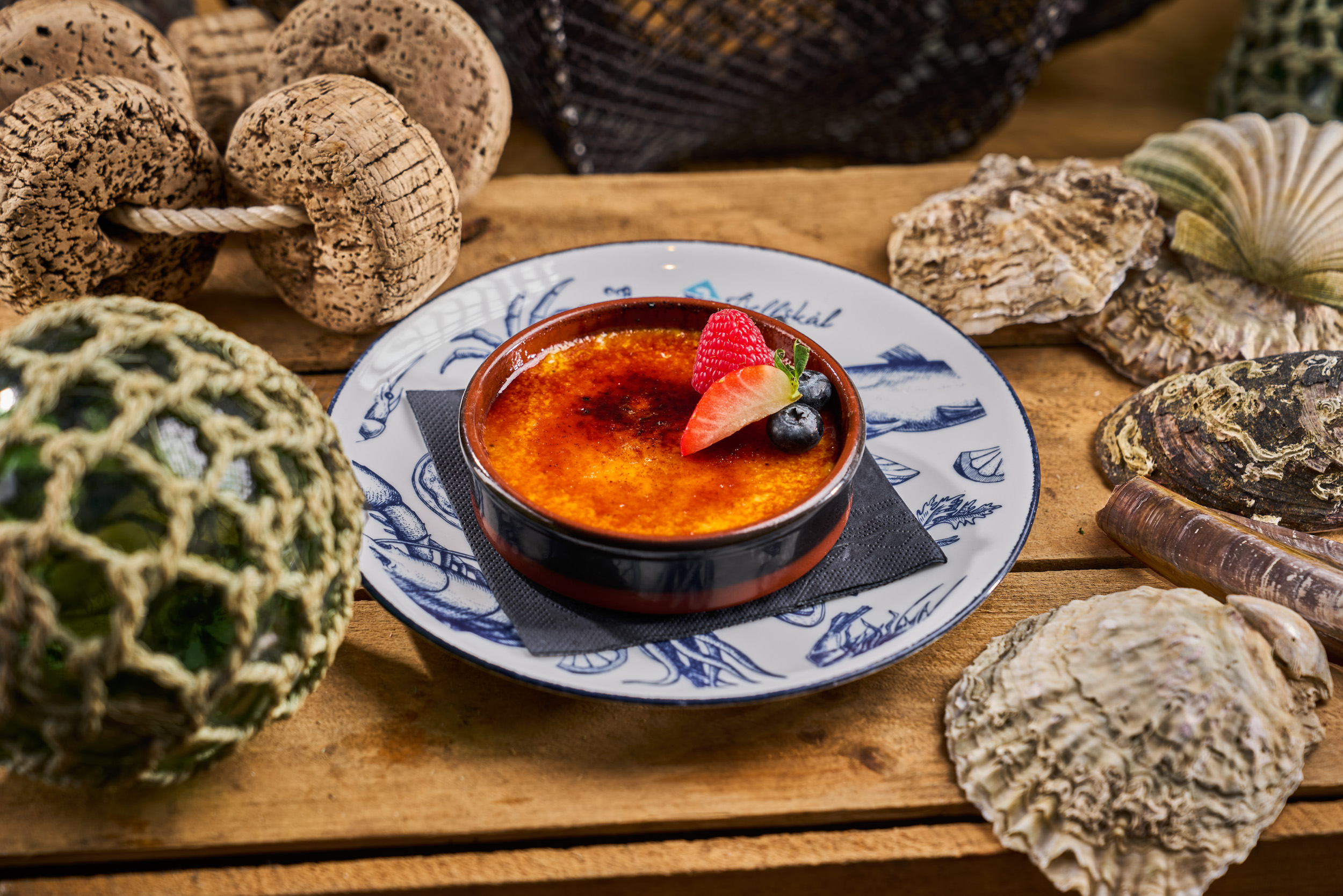 Få en nydelig 3-retters meny hos Fjellskål. Du får herlig gratinerte kamskjell i kjørvel- og estragonsmør til forrett, ovnsbakt fersk kveite til hovedrett og crème brûlée til dessert.