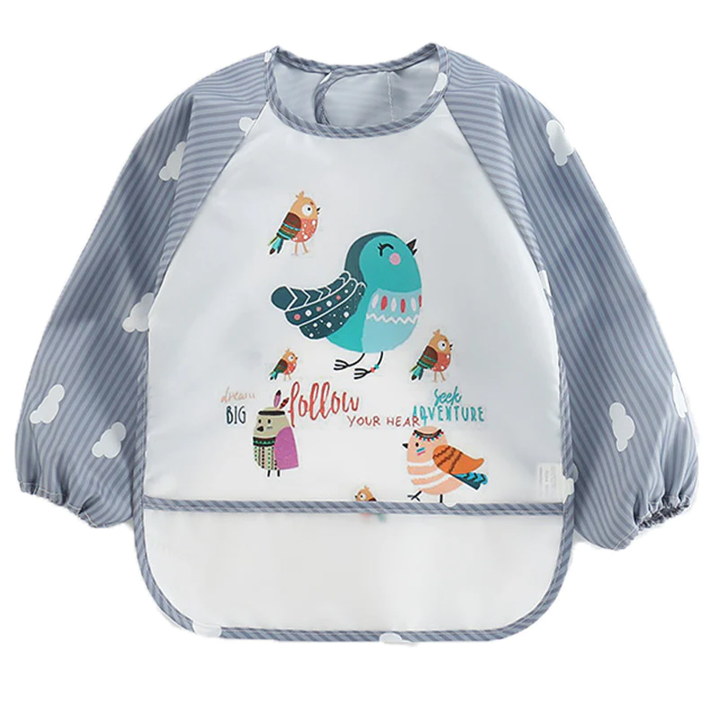 Smekke med lange ermer til baby som gir full beskyttelse mot gris og søl. Lommen i front samler opp matrester og bidrar til å holde gulvet ditt rent.