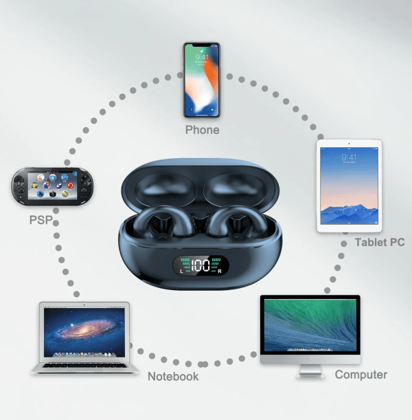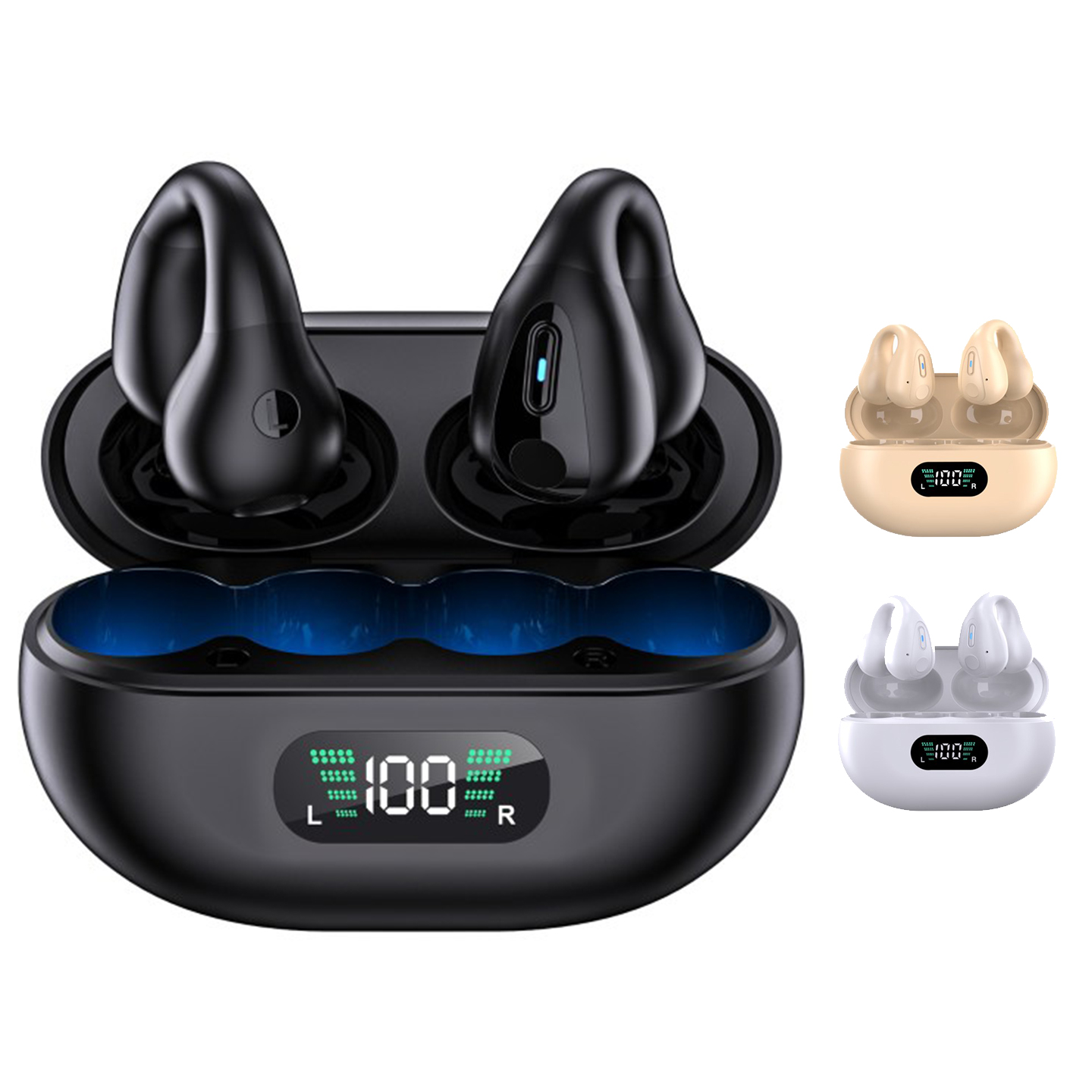 Trådløse øretelefoner med justerbar ergonomisk design og rask automatisk sammenkobling. Velg mellom hvit, svart og khaki.