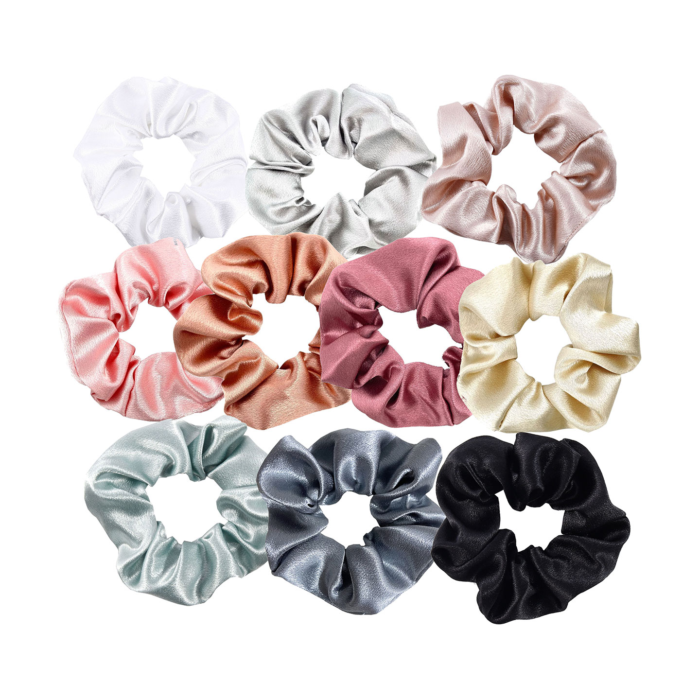 Hårbånd for å lage en perfekt hestehale. Du får 10 stk. hårbånd i sateng i forskjellige farger.
