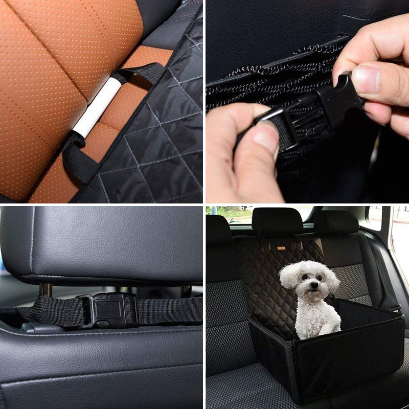 Praktisk bilsete for små hunder og katter. Bilsetet festes rundt nakkestøtten og i bunnen av bilsetet. Bilsetet kan brettes ut slik at det dekker setet som et trekk. Bilsetet er laget av vannavvisende materiale som holder bilsetet rent og tørt.