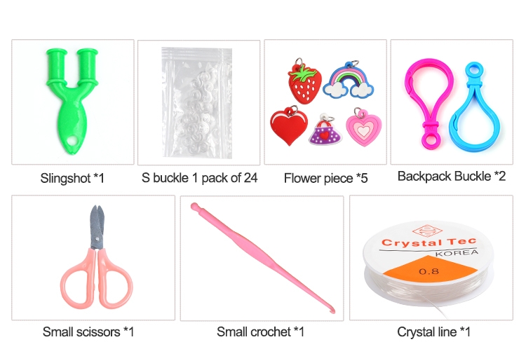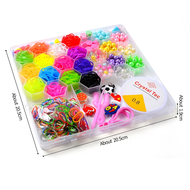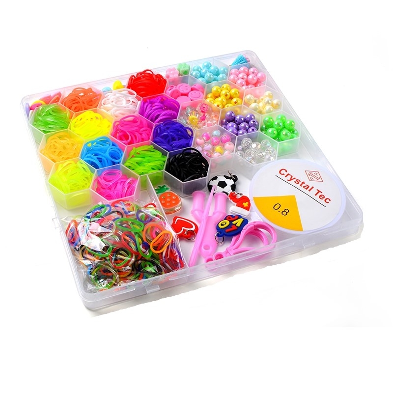 INKLUDERER: 1000 gummibånd, heklenål, Y-kroker, anheng, perler, nylontråd, saks, etc.