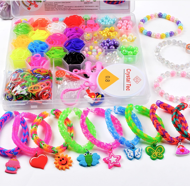 Utforsk en verden av kreativitet og skap fantastiske kunstverk med vårt sett for gummistrikk! Med alt du trenger for å lage fantastiske armbånd, sjarmerende figurer, elegante ringer, trendy vesker og et utvalg andre dekorasjoner, er mulighetene uendelige.