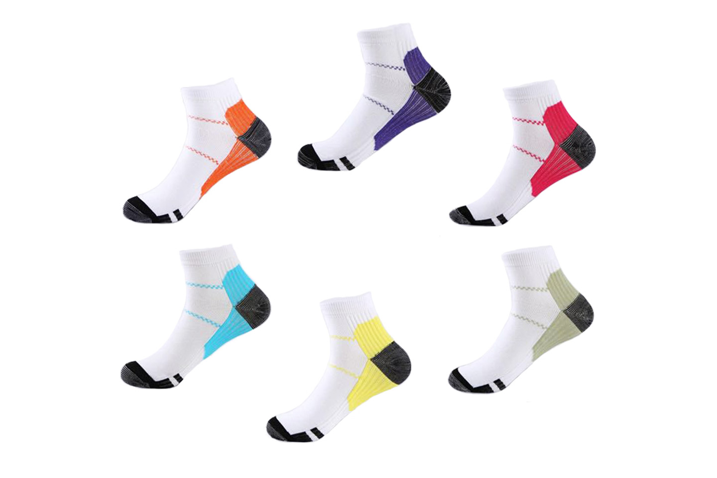 Komfortable sokker laget av slitesterkt stoff med forsterkede sømmer. Sokkene gir økt støtte for både føtter og ankler, noe som er spesielt viktig under trening. De minsker belastning, hevelse og lindrer - perfekt for trening eller på flyet!