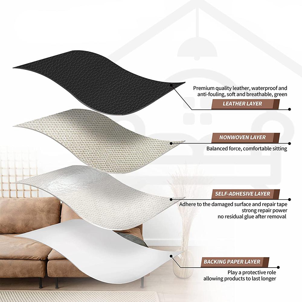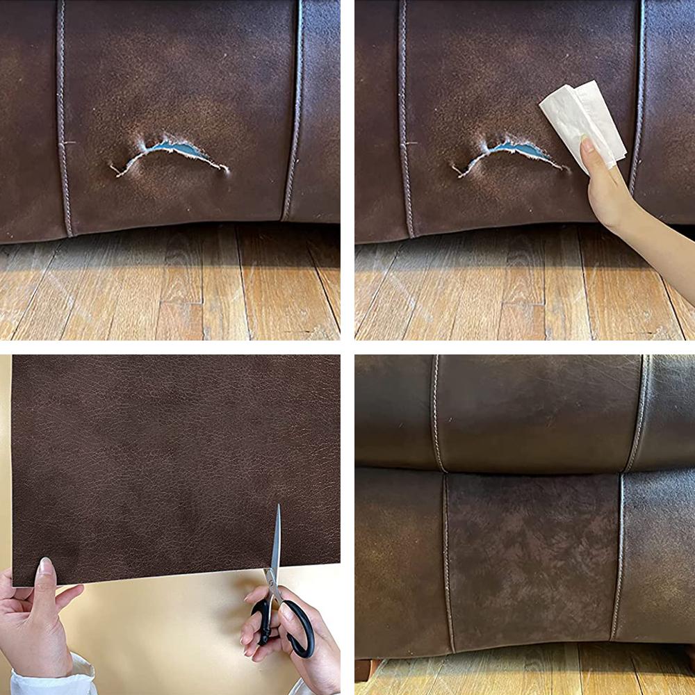 Selvklebende skinnlapp i kunstskinn. Plasteret har en tekstur i ekte skinn. Plasten er enkel å feste og du kan enkelt skjule skadet skinn. Reparer sofaen, stolen, skinnvesken eller bilsetet. Vask