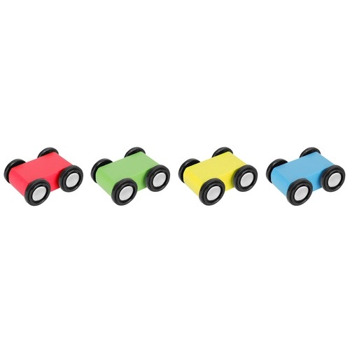 Denne klassiske rutsjebanen i tre med fire små biler er både underholdende og pedagogisk. Når barnet plasserer en bil øverst, ruller den raskt nedover banens forskjellige nivåer – en aktivitet som stimulerer hånd-øye-koordinasjon, finmotorikk og forståelsen av årsak og virkning.