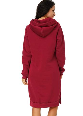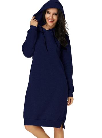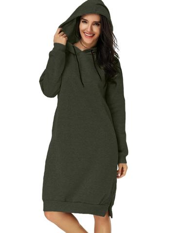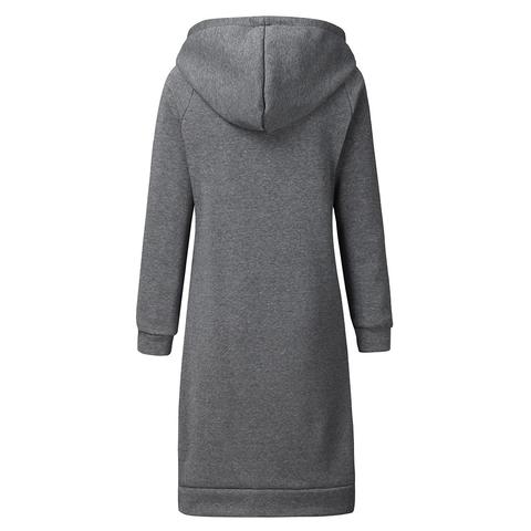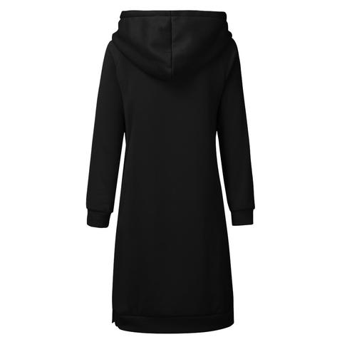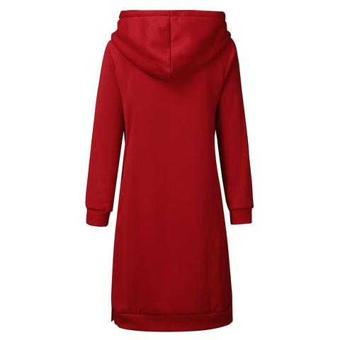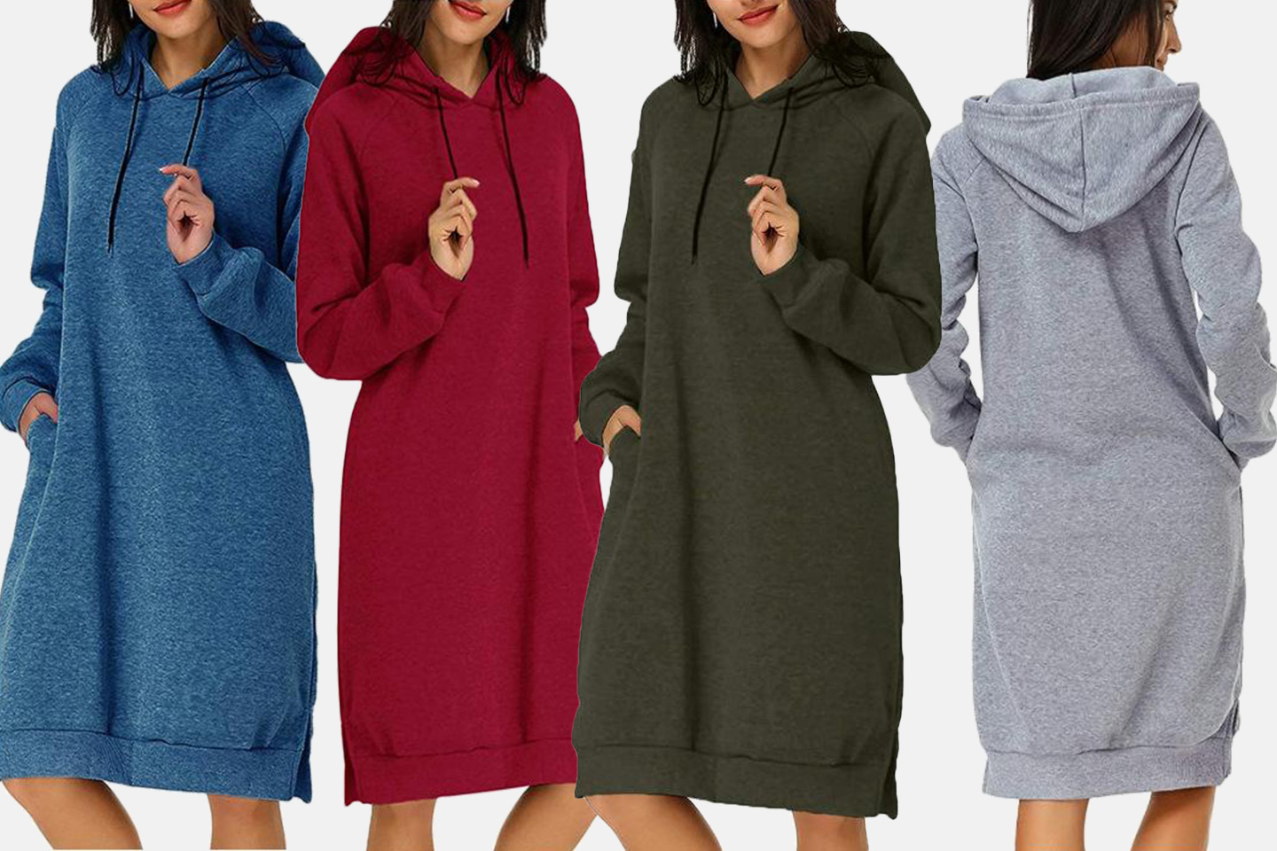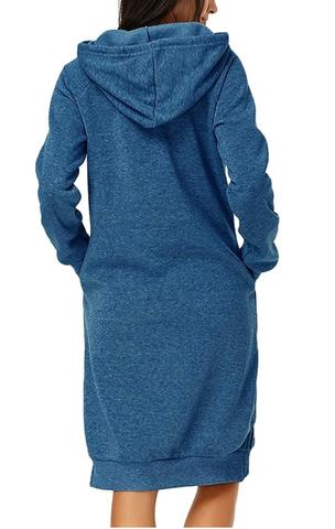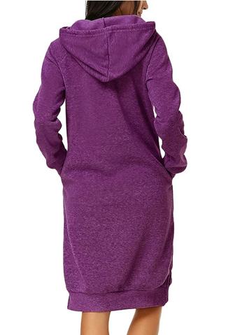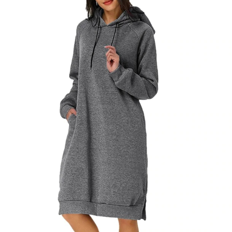 Myk og behagelig hettegenser som er like lang som en kjole. Velg mellom blant annet lysegrå, blå, lilla, rød og svart.