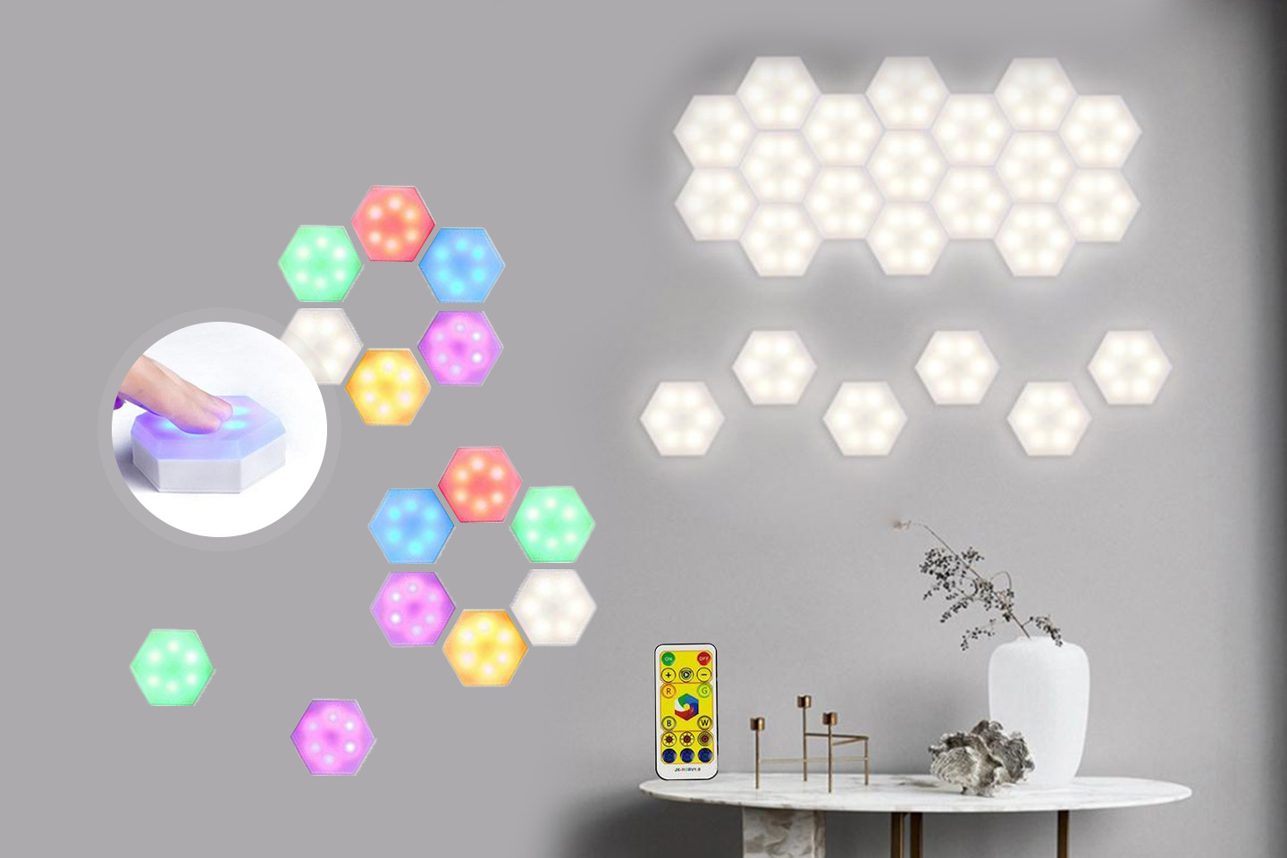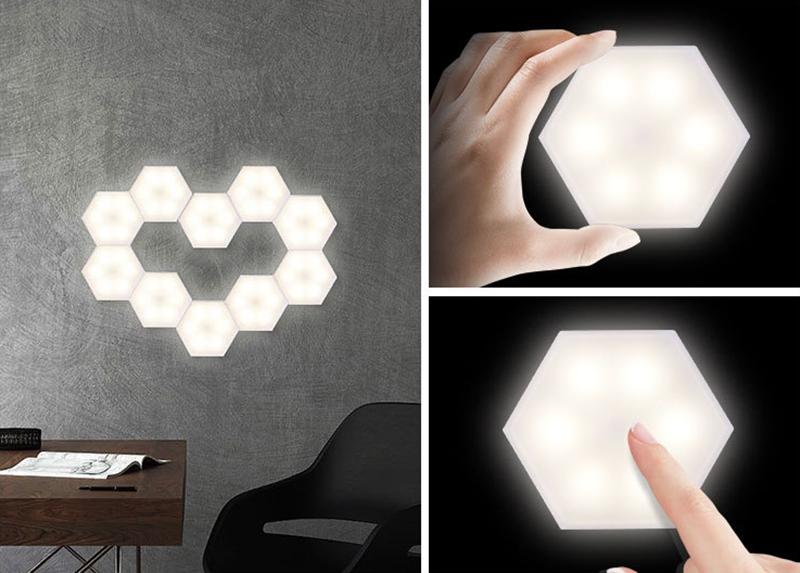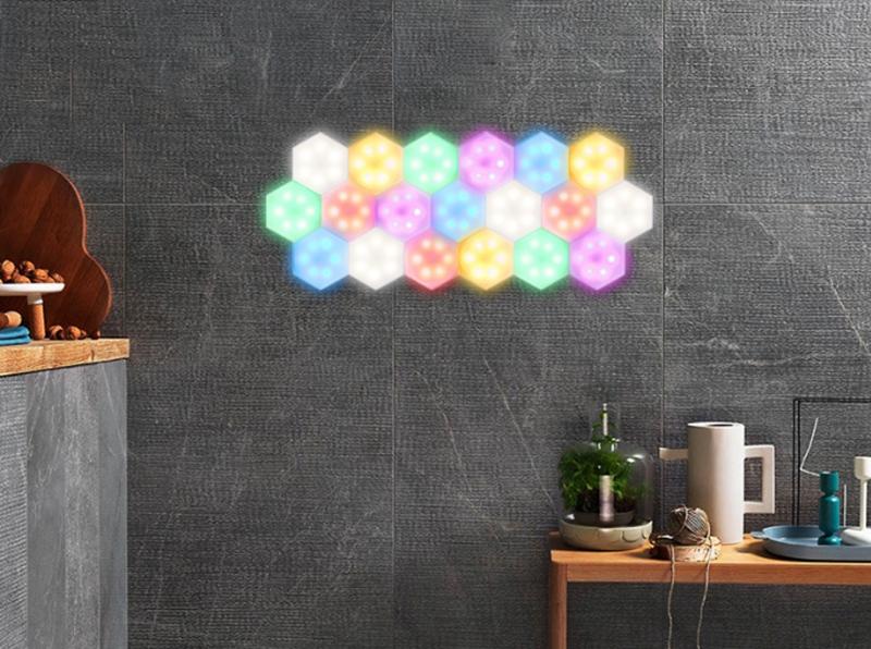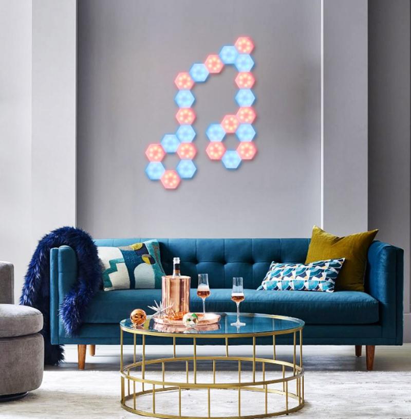 Lag dine egne former av lyskilden din med vegglamper i sekskantet form. Lampene er utstyrt med magnetiske kanter som lar deg koble sammen lampene og dermed få ditt eget unike og personlige preg på veggbelysningen din! Kan styres med både fjernkontroll og touch.