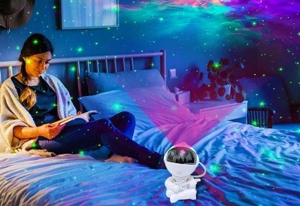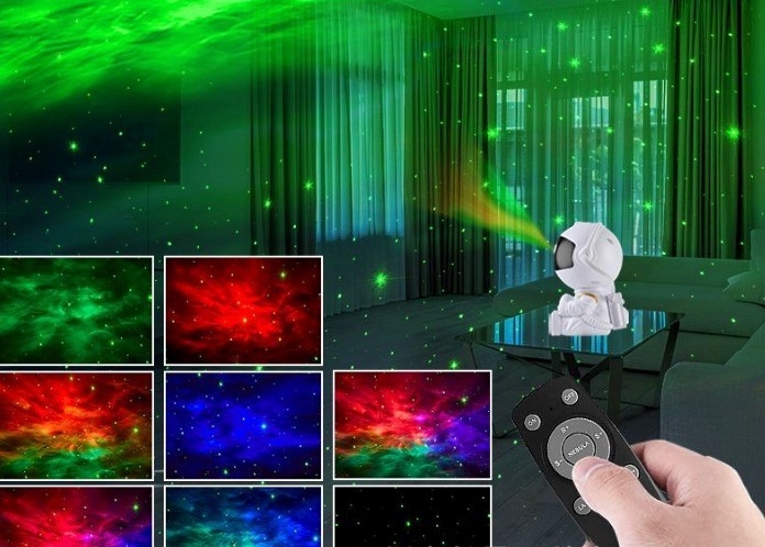 - Lysende astronaut galakselampe/stjerneprojektor med stjernehimmel