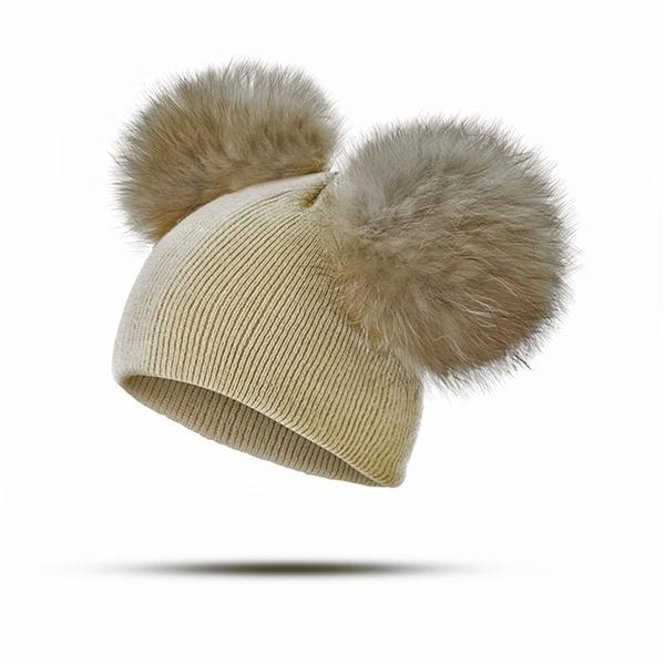 Myk og varm babylue med to søte store dusker som er perfekt på kalde dager. Velg mellom svart, grå, khaki, rosa og rød.