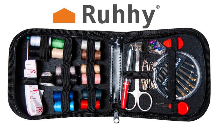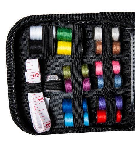 Den har alt du trenger for å utføre manuelt arbeid: tråder, nåler, sakser, et målebånd, fingerbøl, tråder, sikkerhetsnåler.
