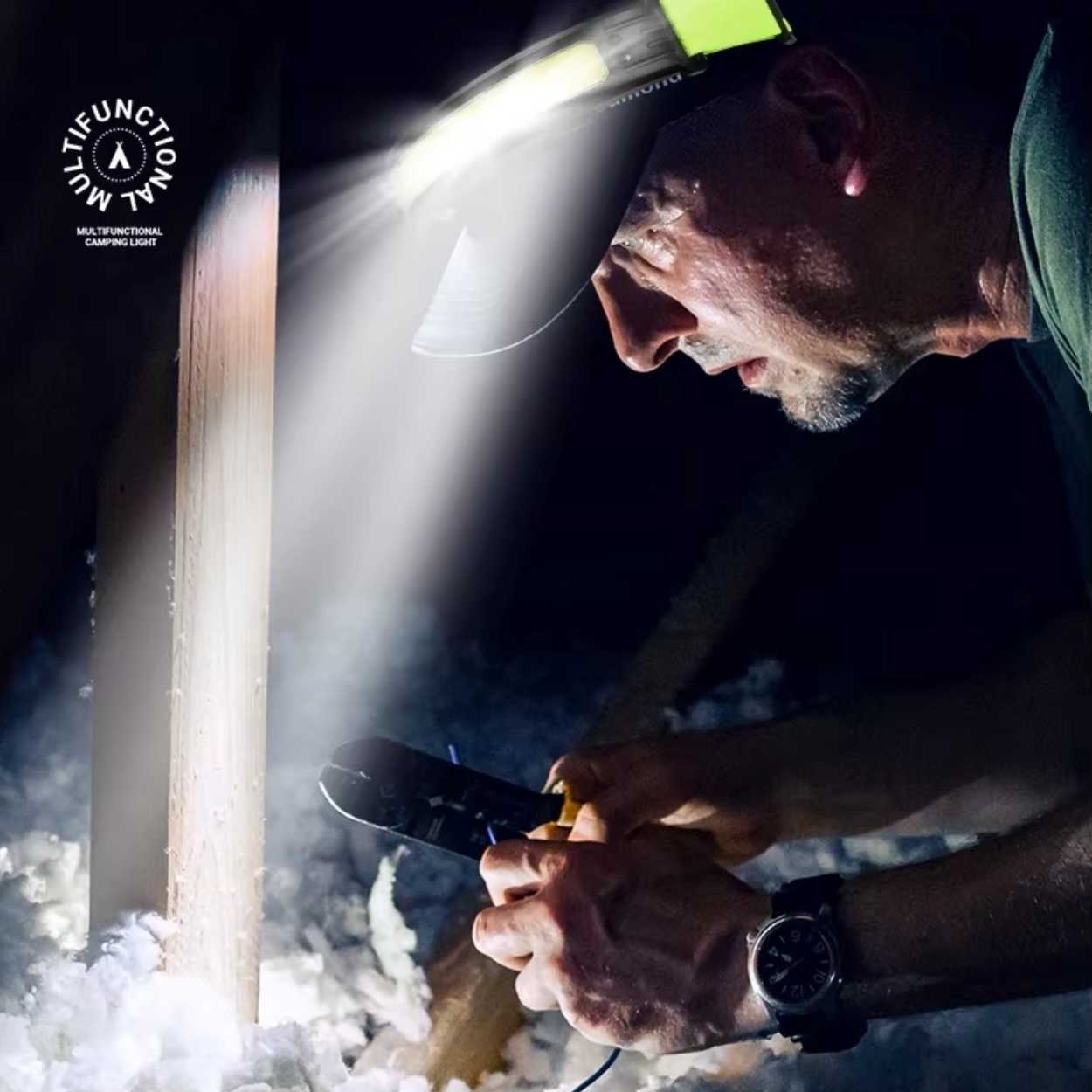 Denne praktiske hodelykten er et must for ethvert eventyr, innendørs eller utendørs. Med en avansert COB LED-stripe gir den et lyst og jevnt lys, perfekt for camping, fotturer eller arbeid i mørke rom. Den justerbare stroppen gjør den behagelig å ha på og dens værbestandige design sikrer pålitelig bruk uansett vær.