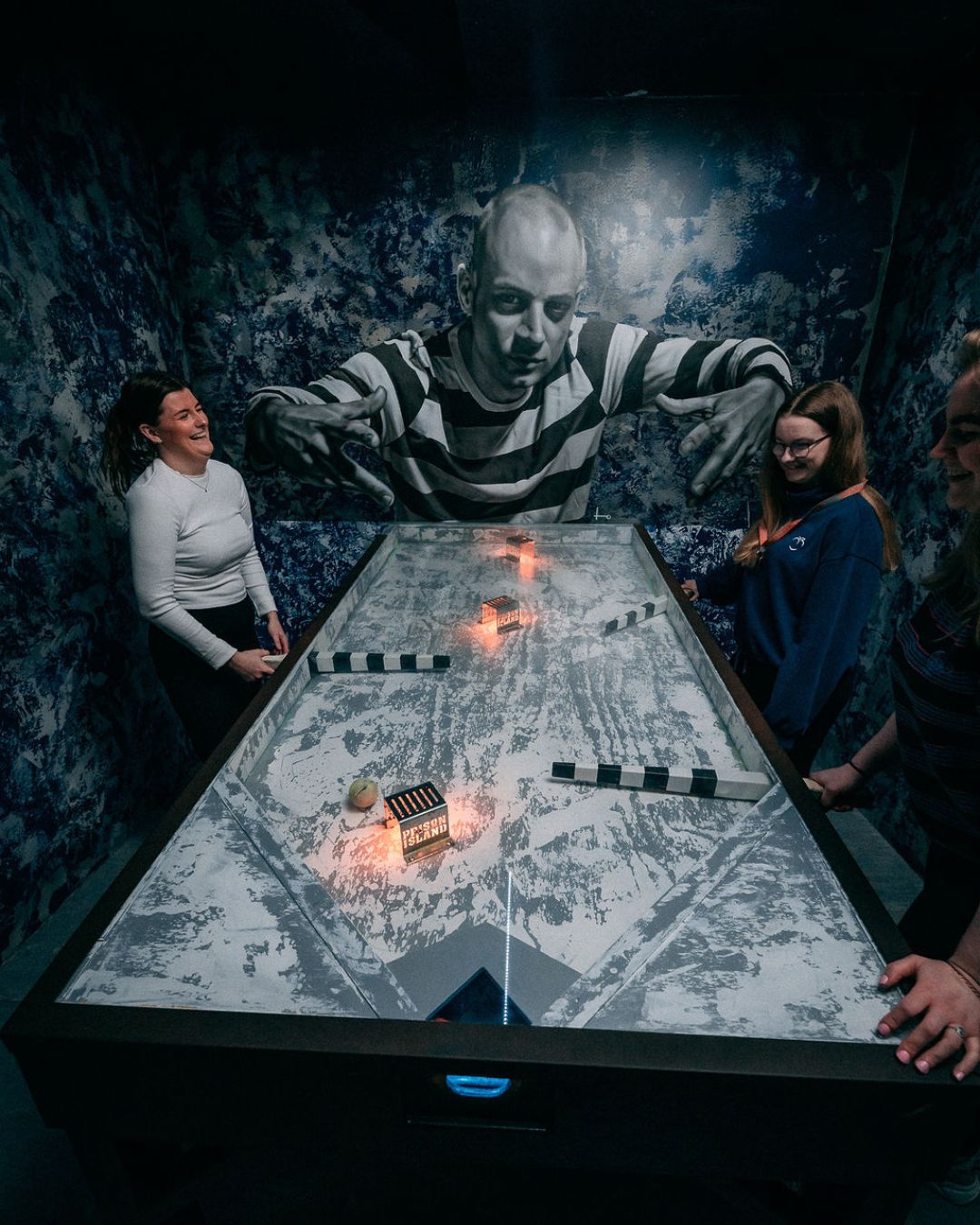 På Fangene på Fortet deles dere opp i mindre grupper – med 3-5 personer pr. lag. Gruppen velger eget lagnavn. Dere er nødt til å samarbeide for å løse utfordringene i cellene. Utenfor cellene står en plansje med blandt annet maks antall poeng dere kan oppnå. Dere blir belønnet med poeng etter hvor raskt og riktig oppgavene løses. Underveis kan dere hele tiden se på skjermer i gangene hvordan dere ligger an. Dere får en utskrift med resultatene når dere er ferdige. Om alle på laget er veldig flinke, kan det være dere oppnår nok poeng til å komme inn på VIP-rommene.