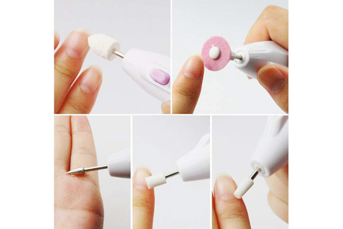 - Funksjoner: fjerner død hud, jevner ut tykke negler og ujevne overflater, når vanskelige steder, polerer negler og neglebånd, former
