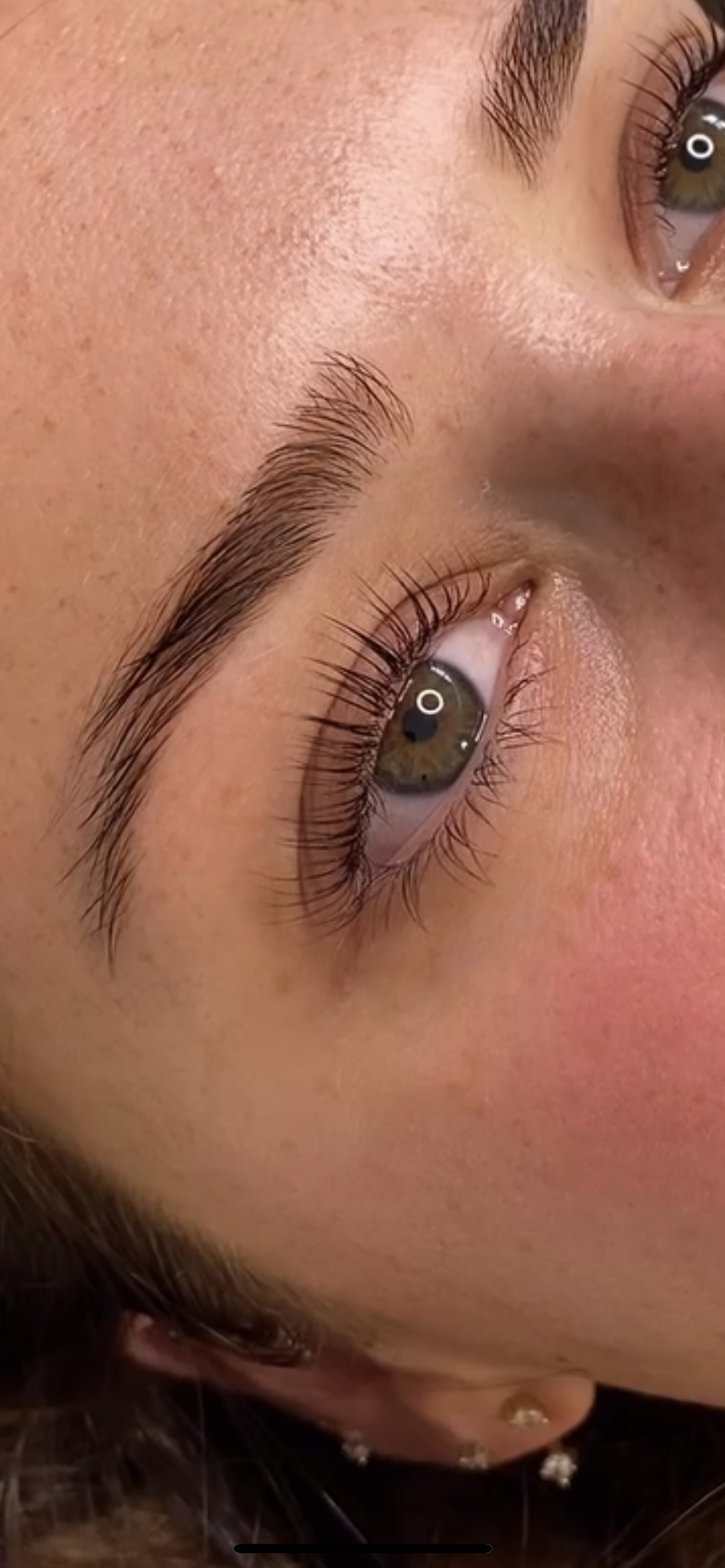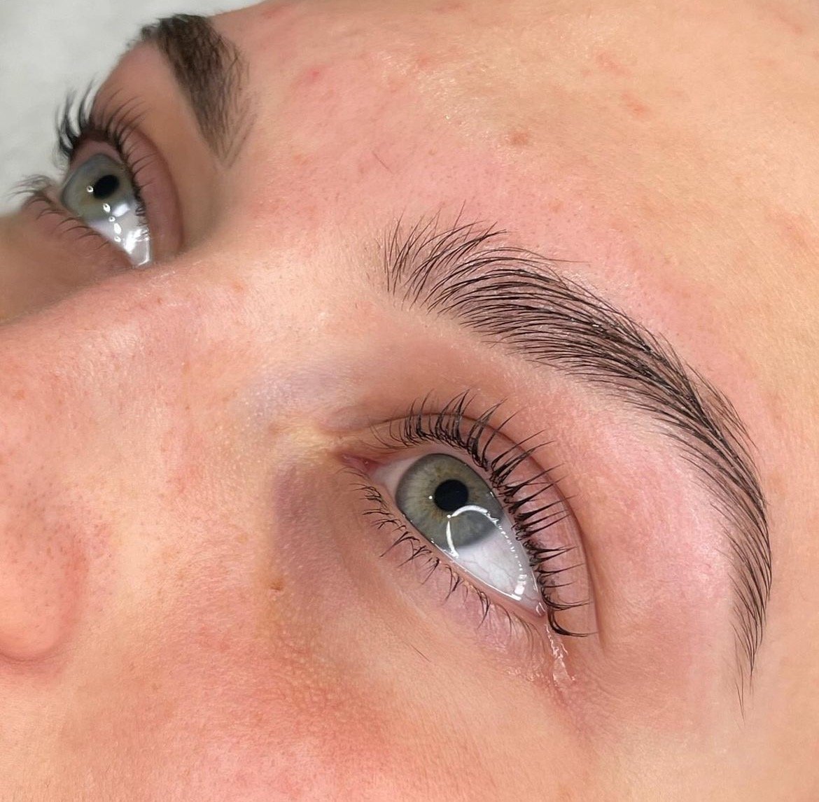 Vippeløft med farge, brynsstyling, brynslaminering og farging og forming av vipper og bryn hos Lash Studio
