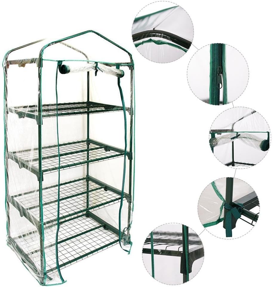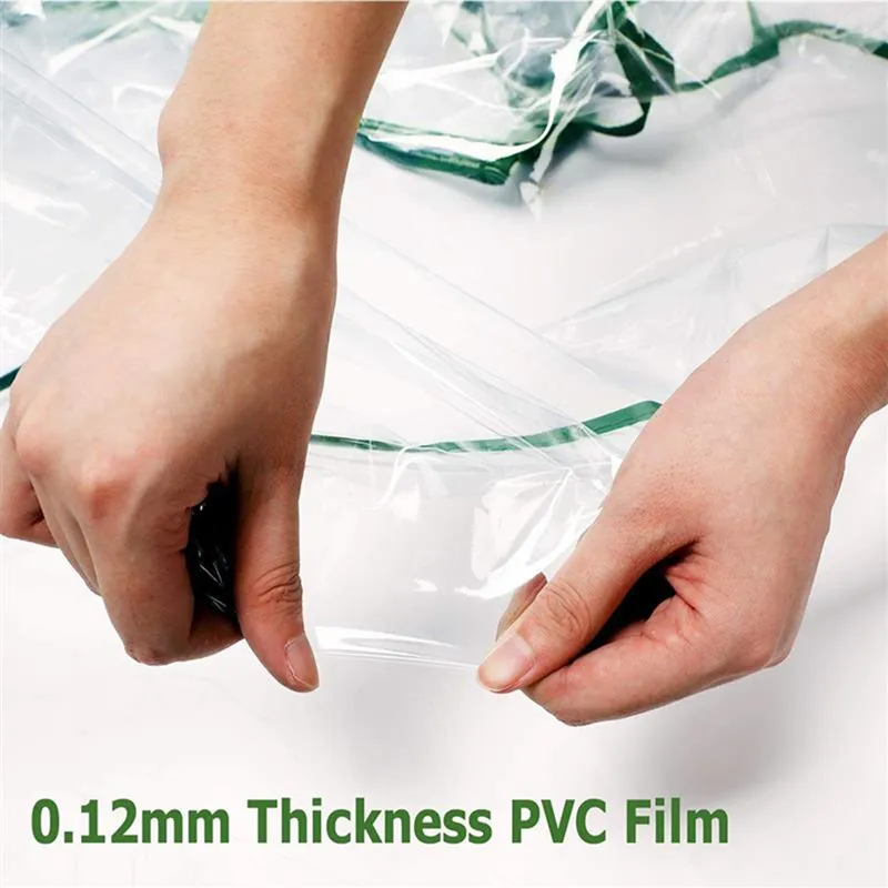 Klar PVC-drivhus deksel som er vanntett og UV-bestandig, så plantene og blomstene dine kan absorbere mer sollys og ha nok plass til å vokse. Kan holde på varmen og beskytte plantene dine mot kulde, regn og snø.