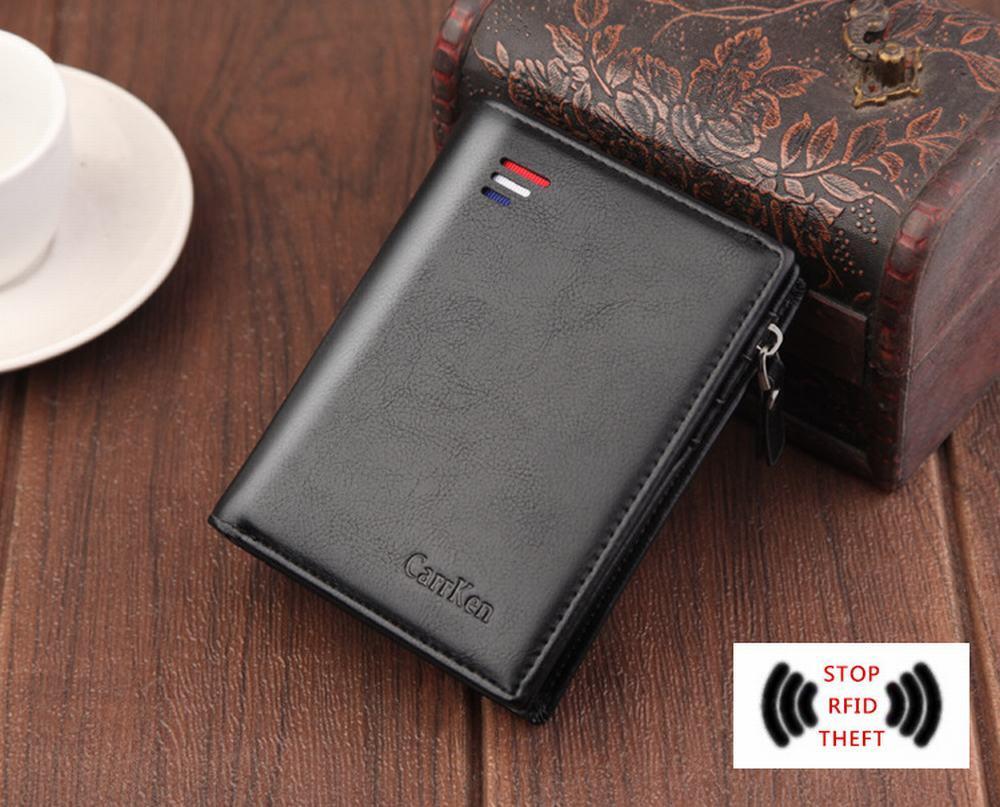 Pent designet lommebok fra CarrKen med RFID-beskyttelse, plass til hele 10 kort, et sted med kort med vinduer (f.eks. Førerkort), stort seddelom og lomme til mynter med glidelåser. Alt passer!