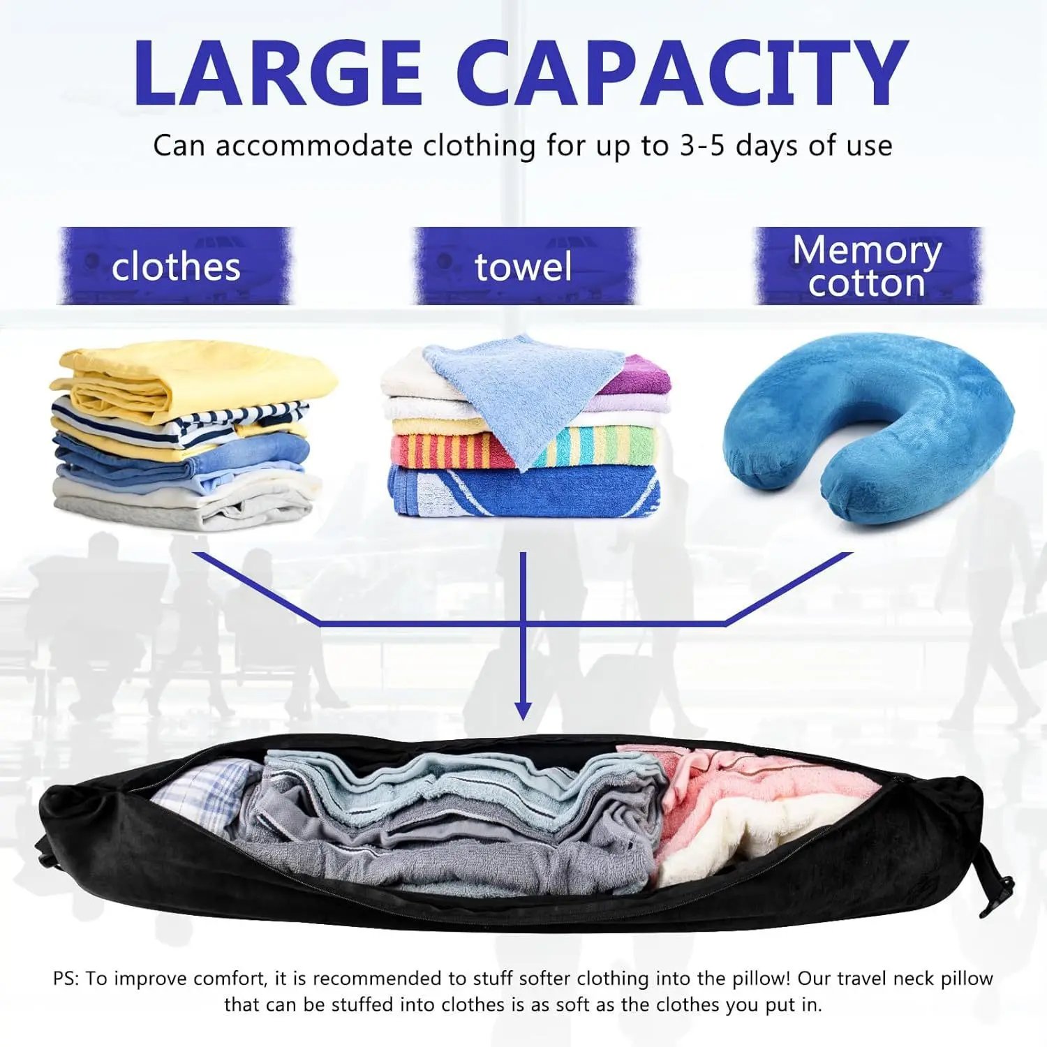 Perfekt for lange reiser – støtter effektivt hode og nakke og har plass til klesplagg samtidig