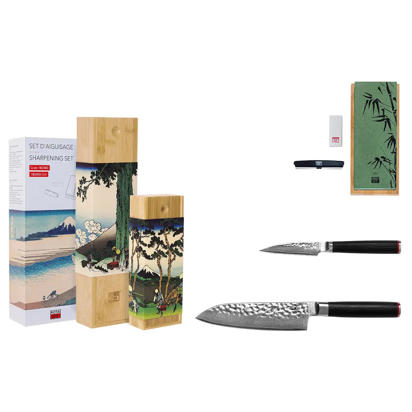 KOTAI Startersett – det perfekte knivsettet for ambisiøse hjemmekokker! Inneholder 3 essensielle deler: Skallekniv for presisjonsarbeid, allsidig Santoku-kniv og et praktisk slipesett som holder knivene sylskarpe. Laget i høykvalitets japansk stål for maksimal ytelse og holdbarhet.