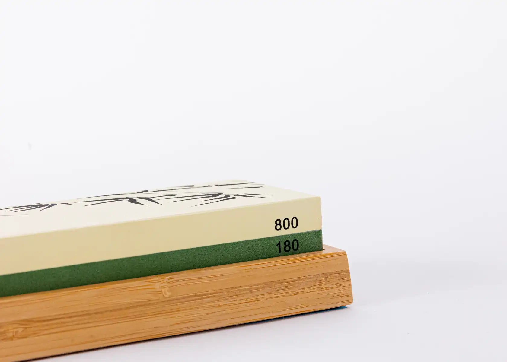 - Slipesett med dobbeltsidig 180/800-korns bryne, sklisikker bambusbase, avrettingsstein og 15-graders vinkelguide