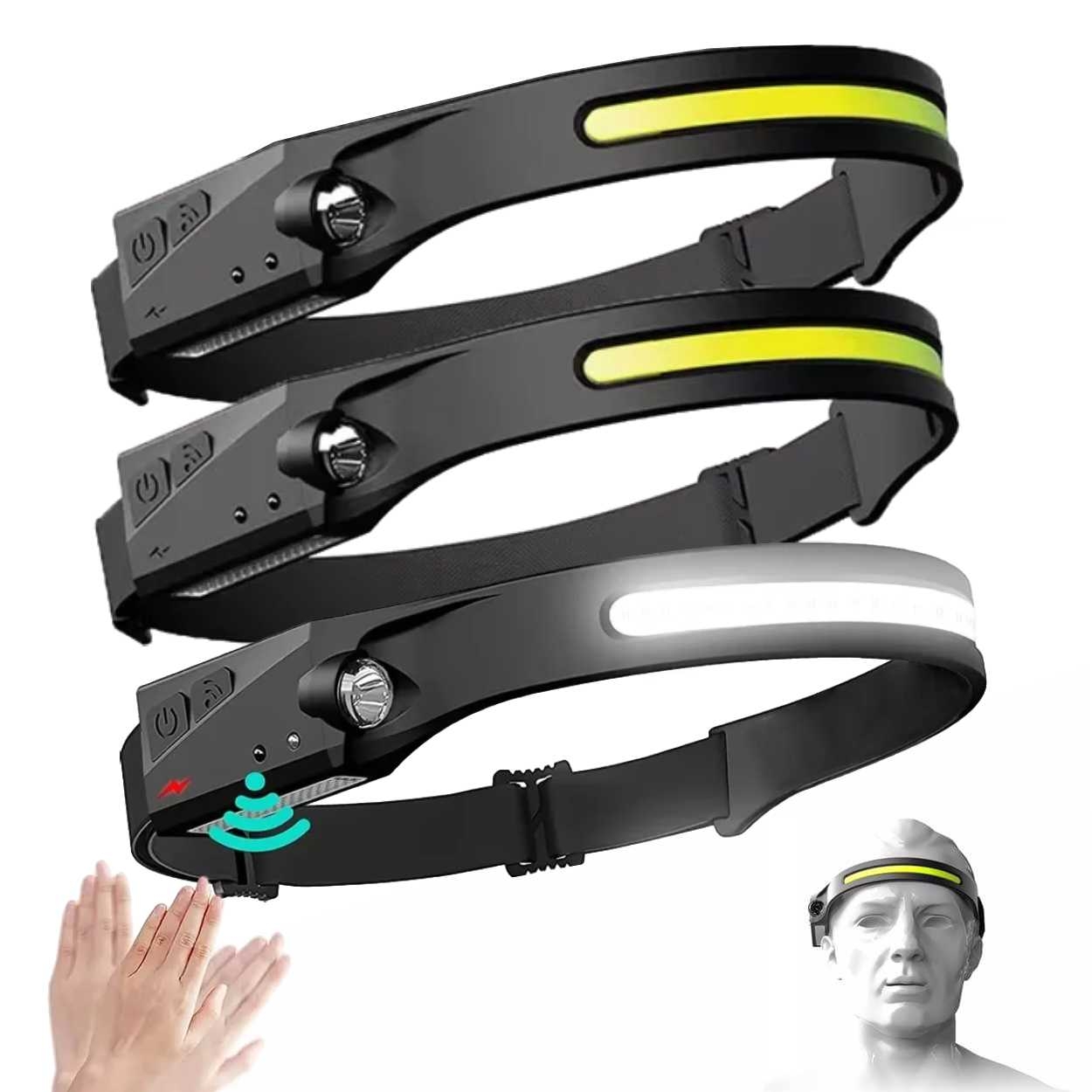 - 3-pack oppladbare LED-hodelykter med 5 lysmoduser for allsidig bruk.