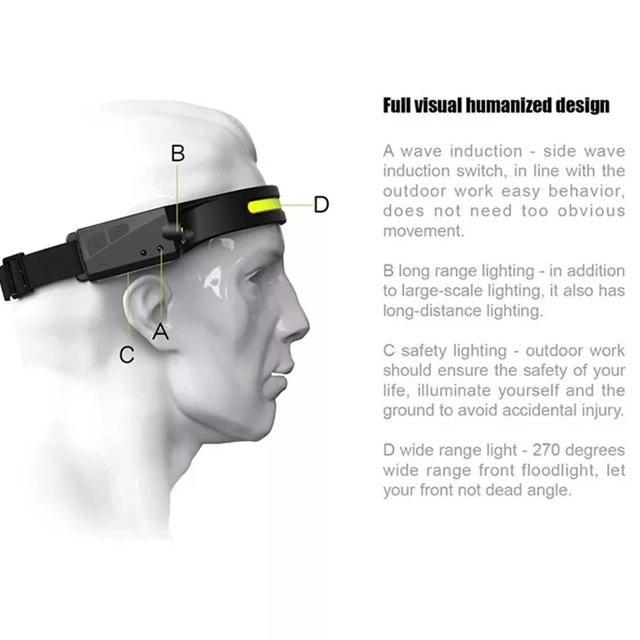Lett og kompakt oppladbar LED-hodelykt som er enkel å bruke og behagelig å bære. Hodelykten har en justerbar hodestropp og ergonomisk silikondesign. Vidvinkellys med flere ulike styrker/moduser. Egnet for løping, arbeid, camping, klatring, fotturer, nattfiske, grotting og andre utendørsaktiviteter.