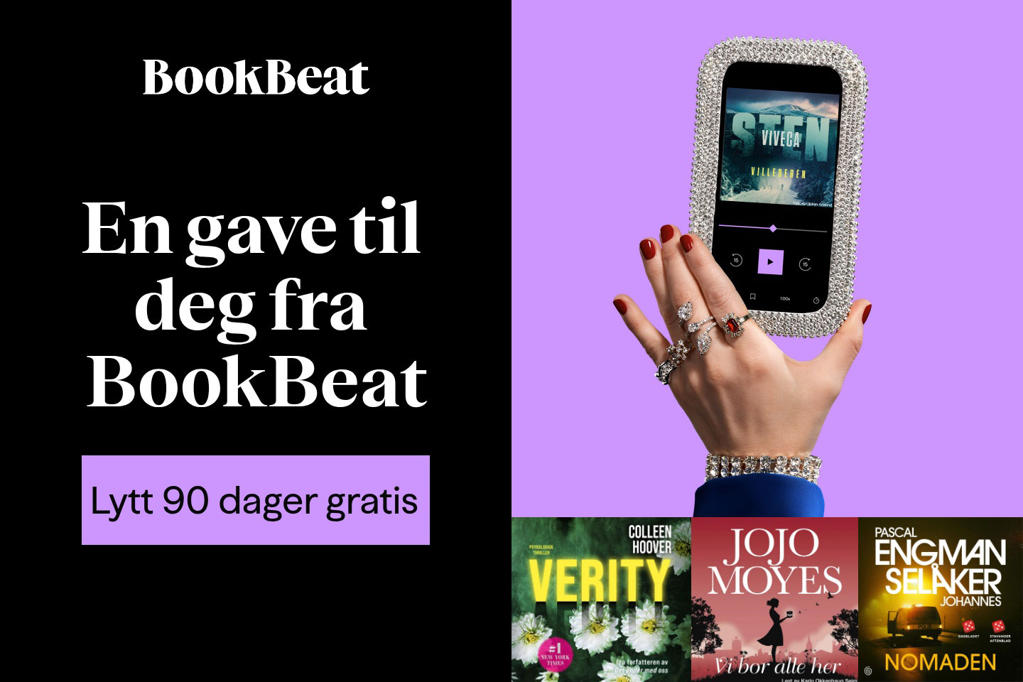 Tilbudet gjelder kun nye kunder hos BookBeat, og etter prøveperioden kan du lytte fra 99/mnd. BookBeat har ingen bindingstid, avslutt når du vil.