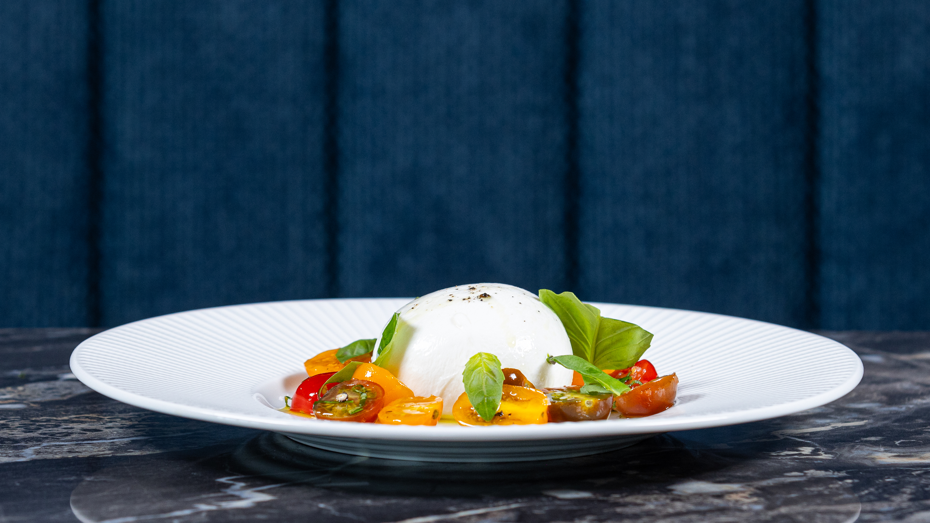 - Burrata - kremet burrata ost, tomater og oliven olje