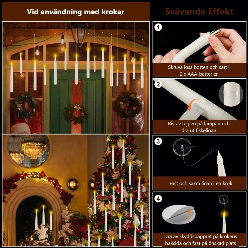 Lysene sprer et varmt hvitt skinn som passer perfekt til jul, middager, fester eller koselige hjemmekvelder. Den medfølgende trollstaven gjør det enkelt å tenne og slukke lysene på avstand – en effektfull detalj som imponerer både barn og voksne.