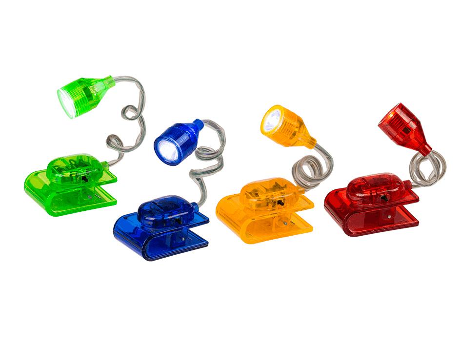Praktisk og kompakt leselampe med justerbar hals som gir behagelig belysning under lesing. Lampen festes enkelt med den innebygde klemmen på bok, avis eller papir og passer perfekt til sengelesing, reiser eller mørke hjørner.