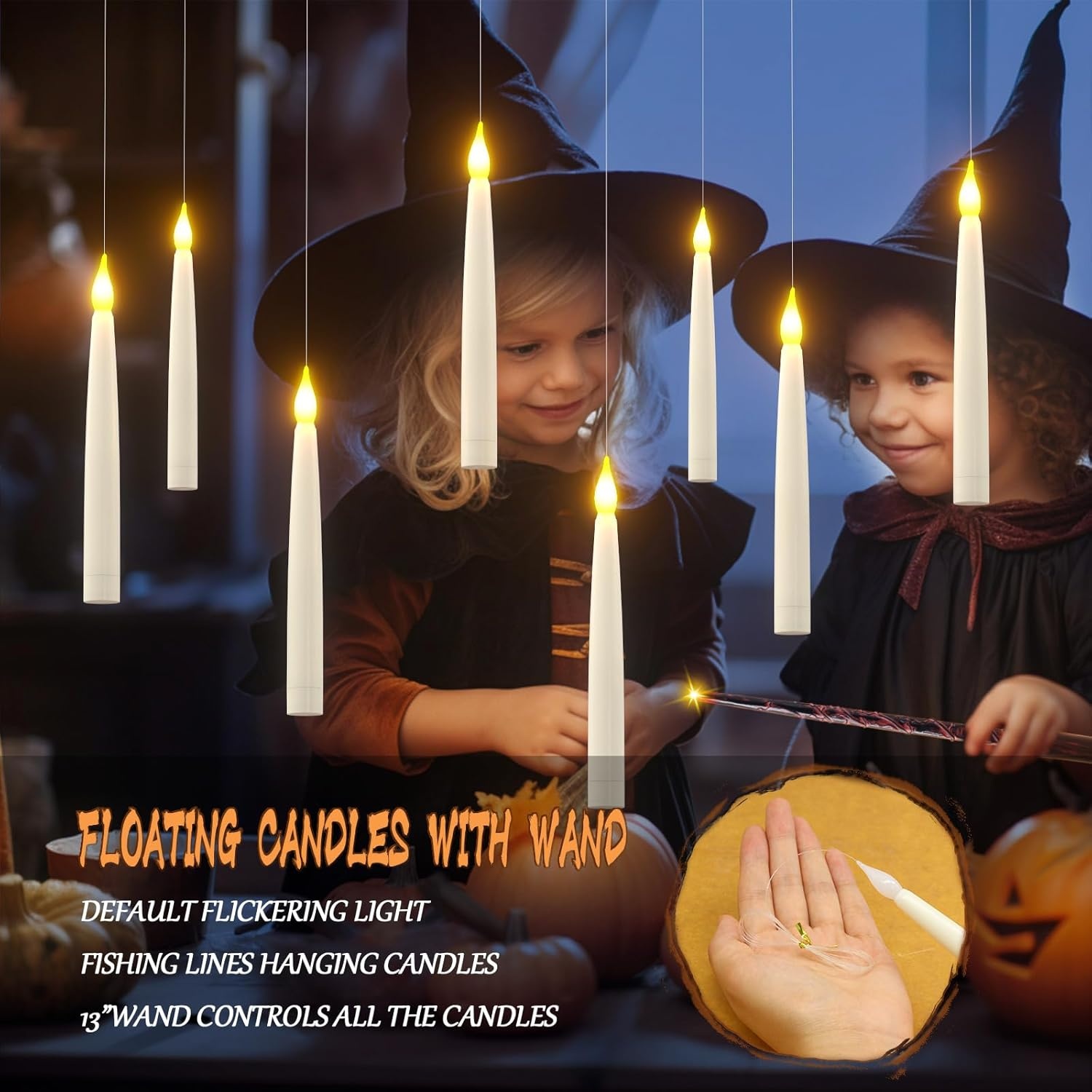 12 LED-lys som henges i taket og styres med en tryllestav. Slå lysene på og av med tryllestaven. Lysene henges enkelt opp med det medfølgende tauet. De har lang batterilevetid for økonomisk bruk. De dekorative lysene passer til ulike anledninger og rom.