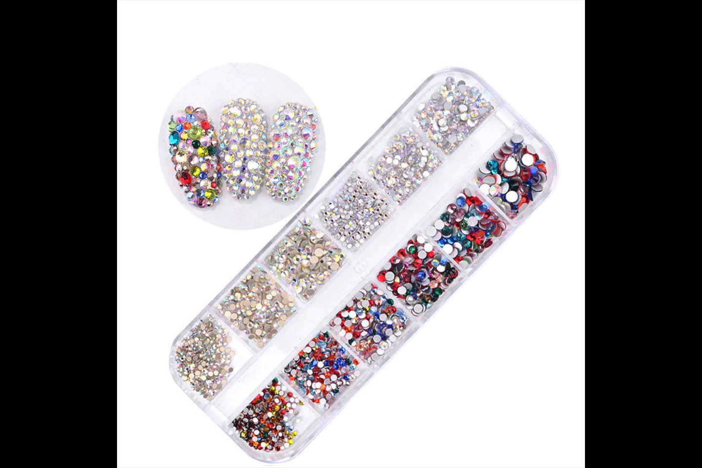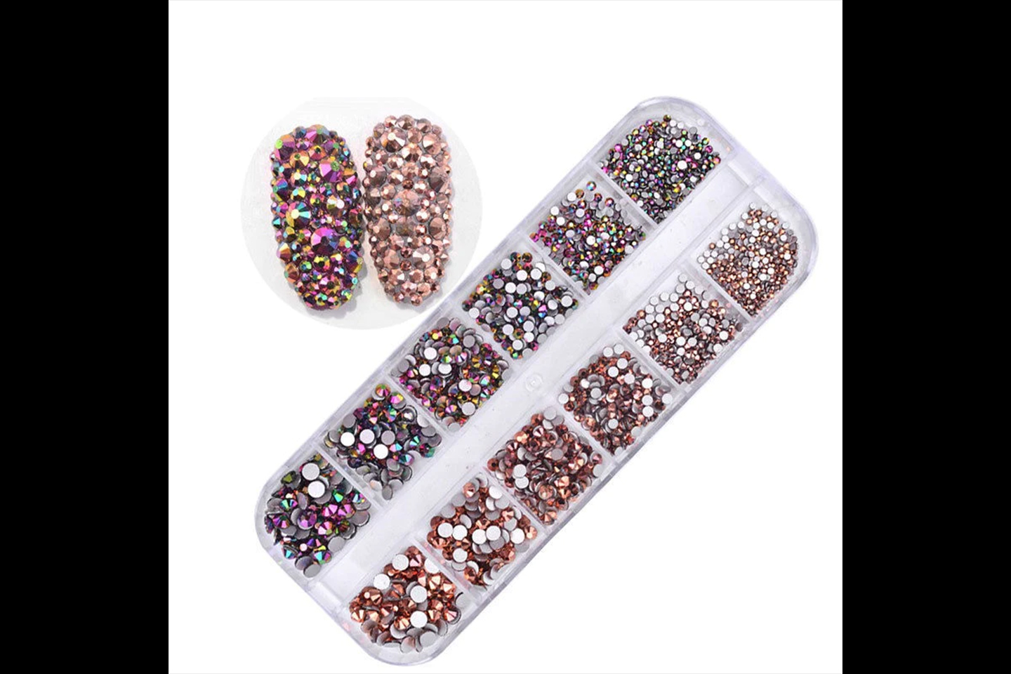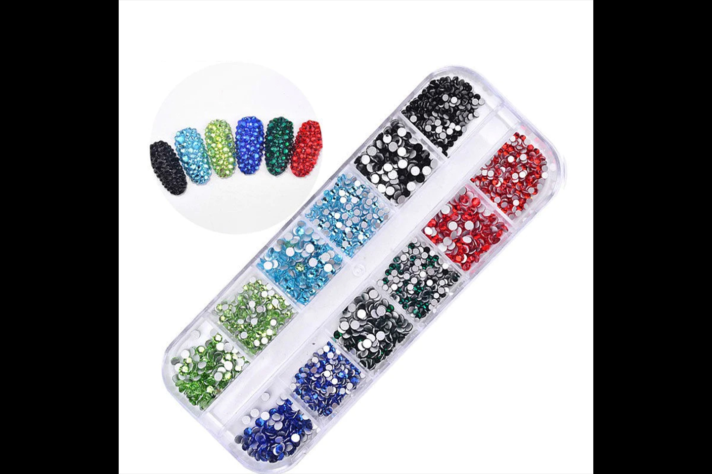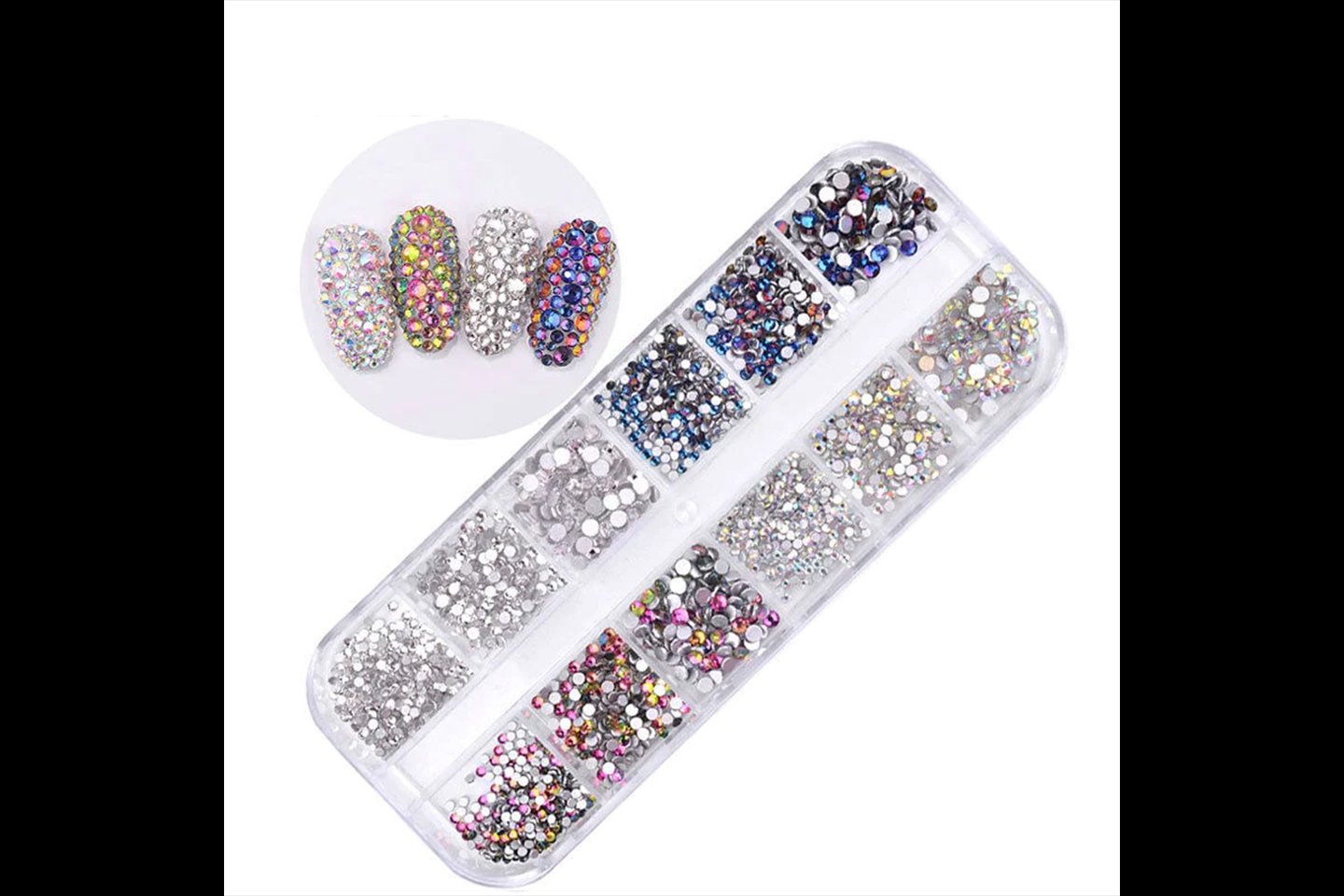 - Pakken inneholder en boks med 12 rom med fargerike rhinestones