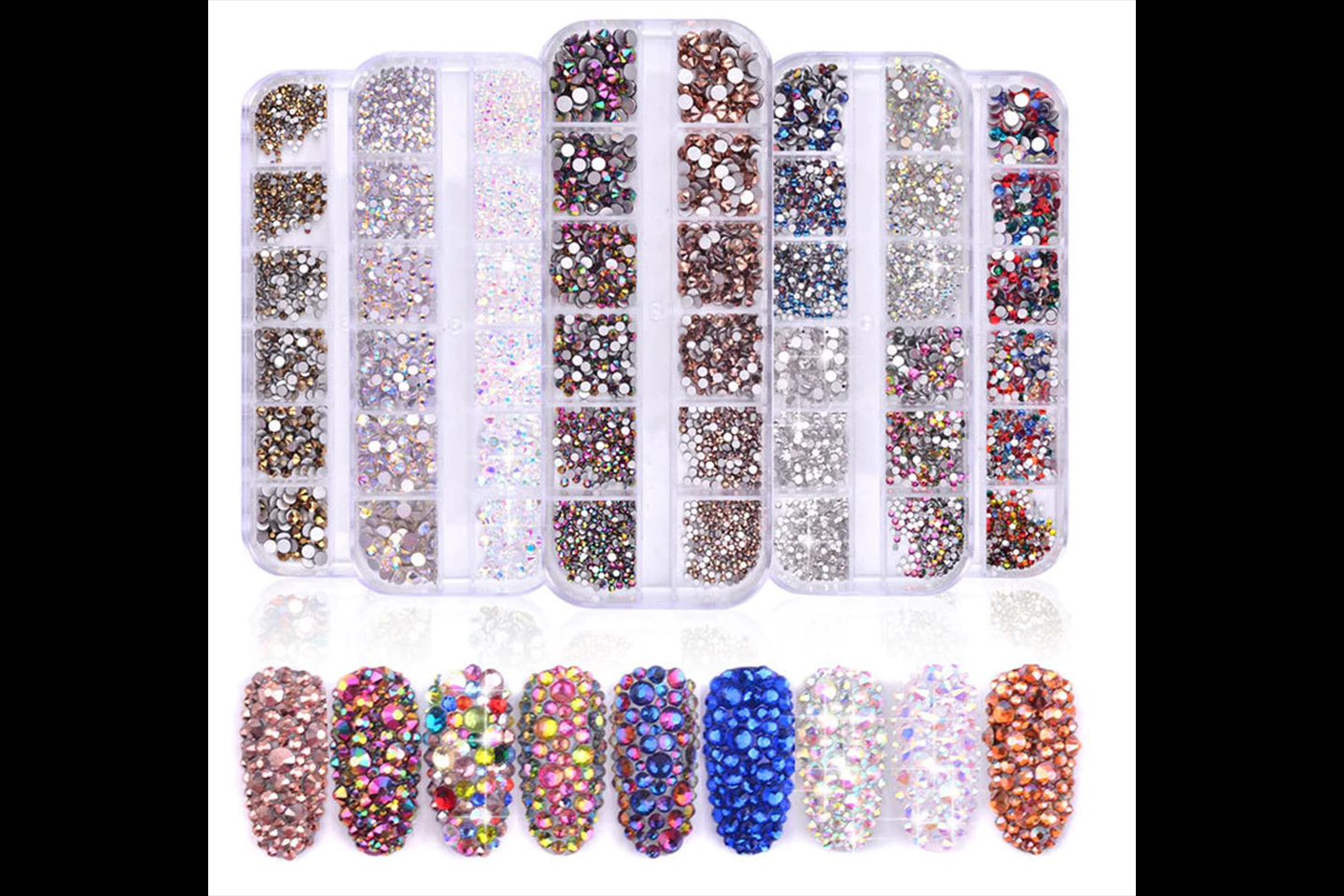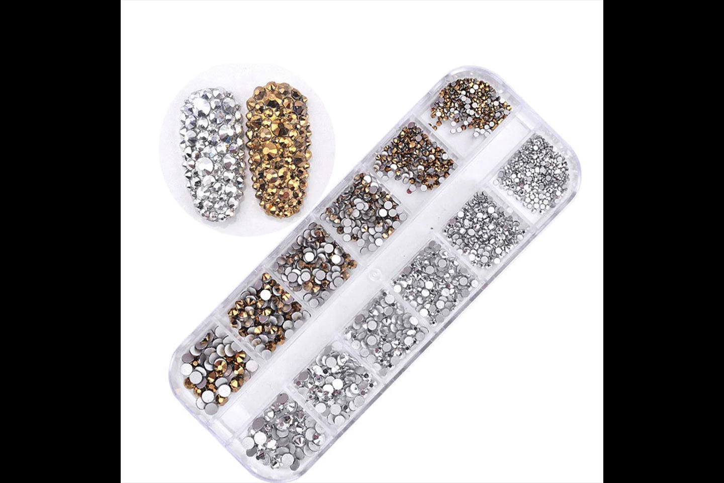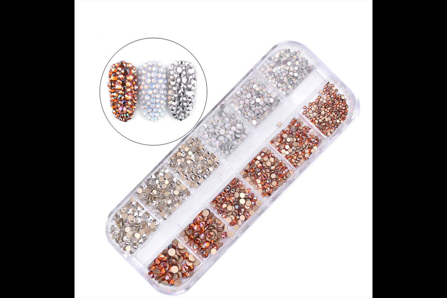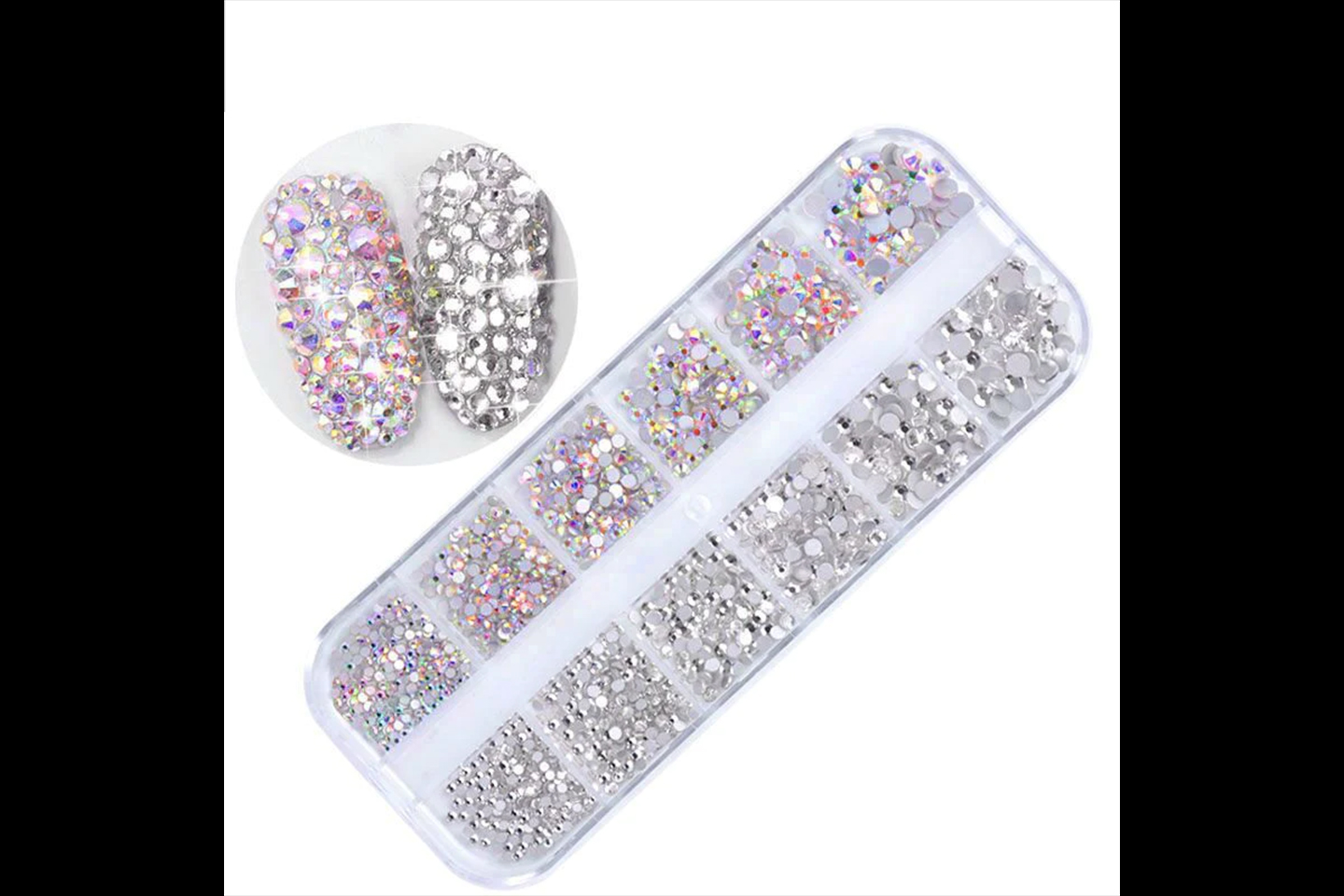- Pakken inneholder en boks med 12 rom med fargerike rhinestones