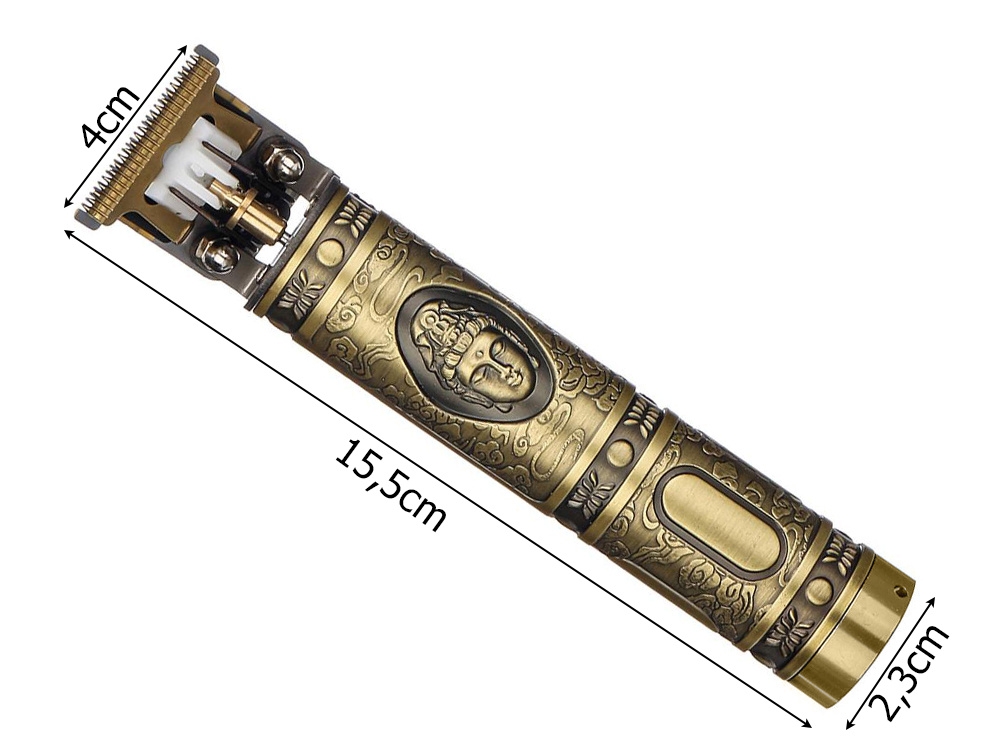Den passer perfekt i hånden og er kompakt i størrelse, noe som gjør den enkel å bruke. Trimmeren drives av et oppladbart batteri for langvarig og trådløs bruk. Den lades med den medfølgende laderen i settet.