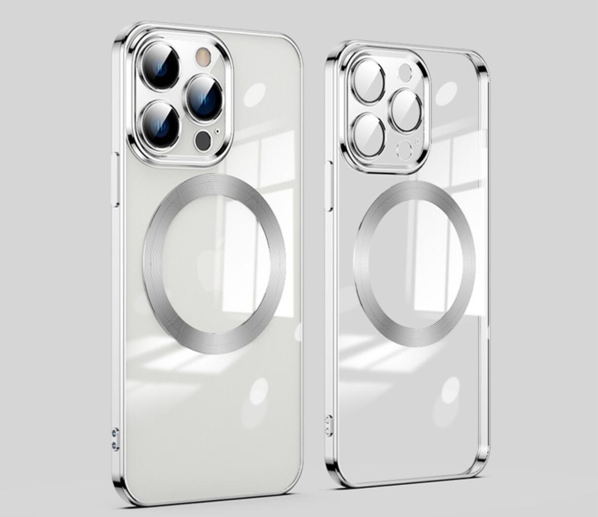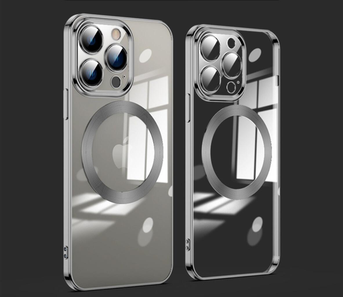 MagSafe-kompatibelt telefondeksel for alle iPhone 11, 12, 13 og nyeste 14-modeller. Dekselet støtter alt MagSafe-kompatibelt tilbehør. Materialet er galvanisert med laser, som gir en