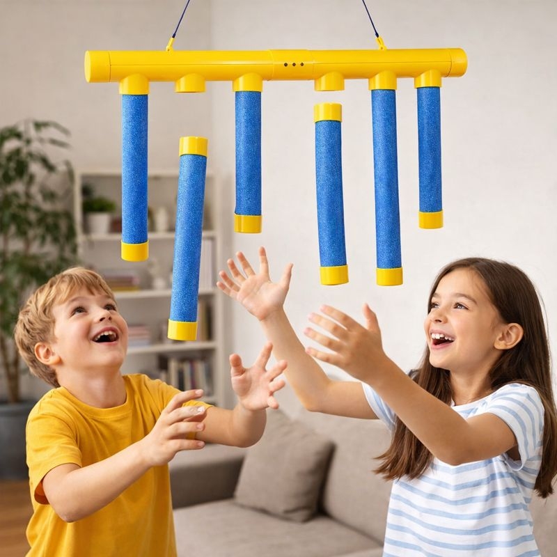 Dette reaksjonsspillet med fallende pinner er en leken måte for deg å trene fokus, hurtighet og koordinasjon på. Spillet slipper myke pinner i ulike intervaller, noe som skaper en engasjerende utfordring som krever raske reflekser og god konsentrasjon. Pinnene er laget av mykt EVA-skum som er skånsomt å gripe, mens hovedenheten er laget av slitesterk plast.