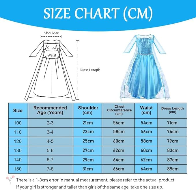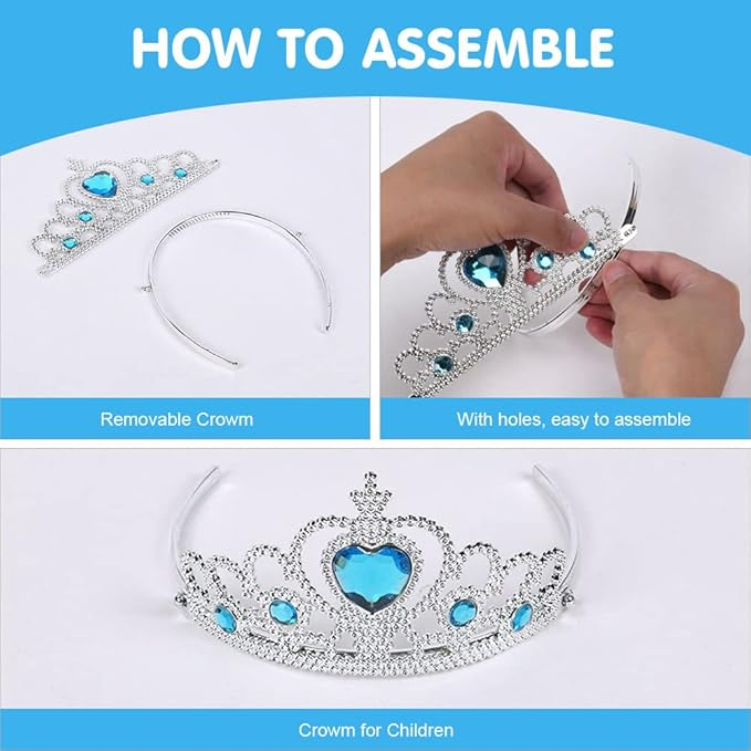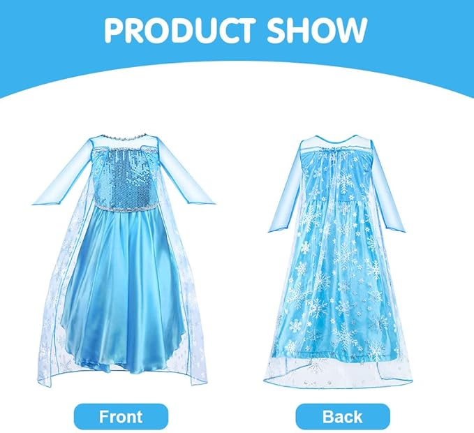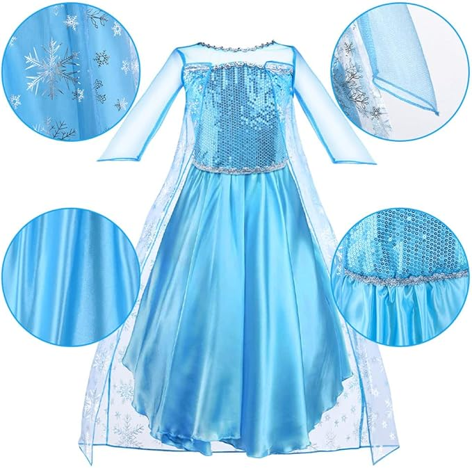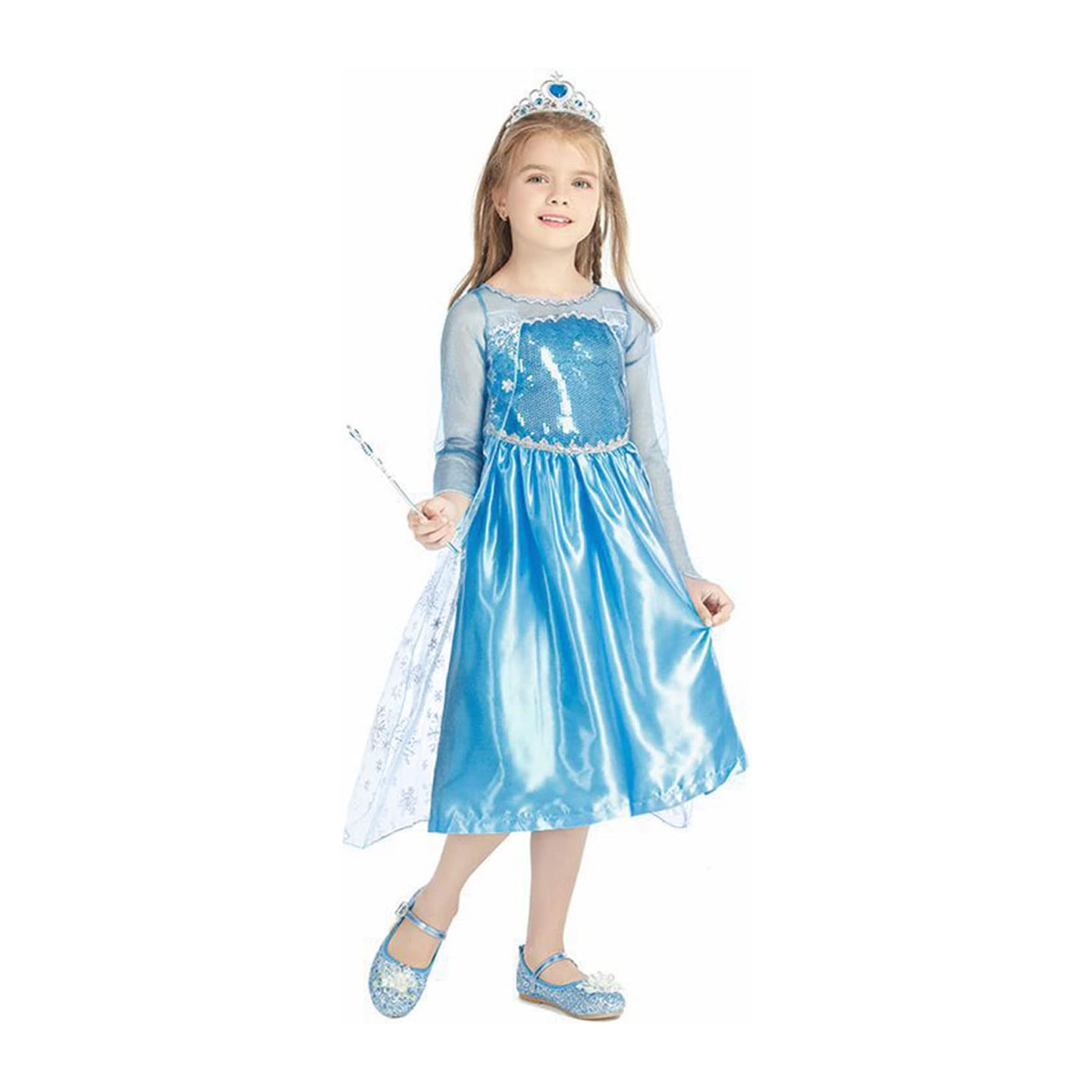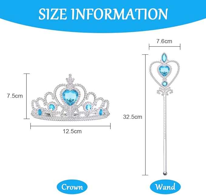 La eventyret bli virkelighet med denne vakre prinsessekjolen med krone og tryllestav. Kjolen er sydd i mykt, skimrende stoff med fine detaljer og luftige tyllermer som gir en magisk følelse. Perfekt til bursdagsfeiringer, maskerader eller lek hjemme når fantasien tar overhånd og du vil føle deg som din favorittprinsesse.