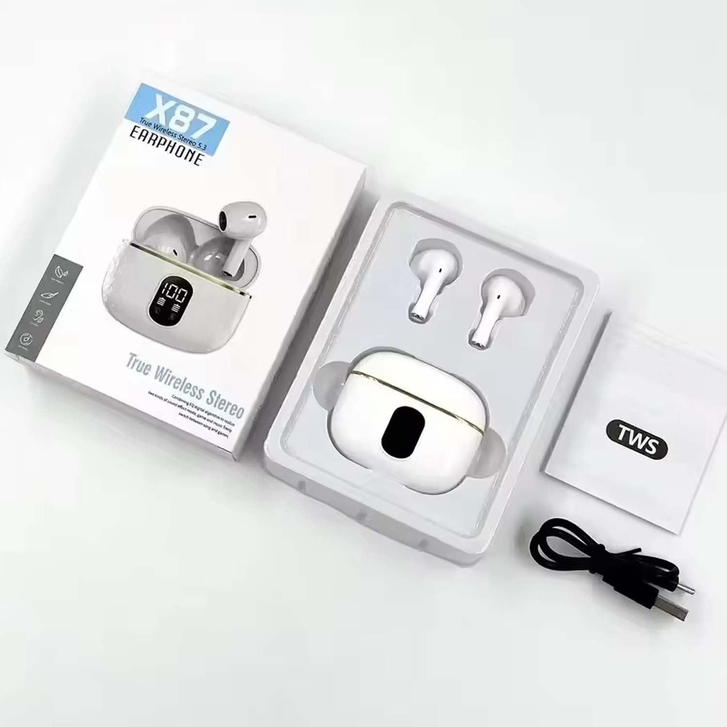 Opplev musikk og samtaler uten forstyrrelser med våre TWS trådløse in-ear hodetelefoner! Med Bluetooth 5.3, ergonomisk design og touchkontroller får du en enkel og komfortabel lydopplevelse som varer i opptil 36 timer.