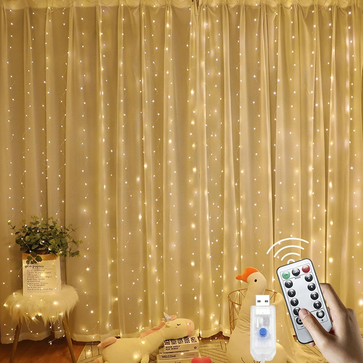 300 glitrende LED-lys i et vakkert fossefalldesign, perfekt for både innendørs og utendørs bruk. Bytt mellom forskjellige moduser og juster lysstyrken med den medfølgende fjernkontrollen. Lys opp til høytider eller hverdagsbruk og skap en herlig atmosfære i hjemmet ditt.