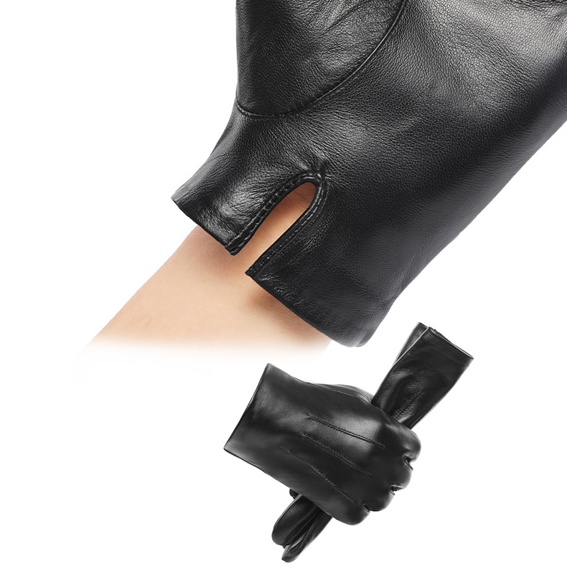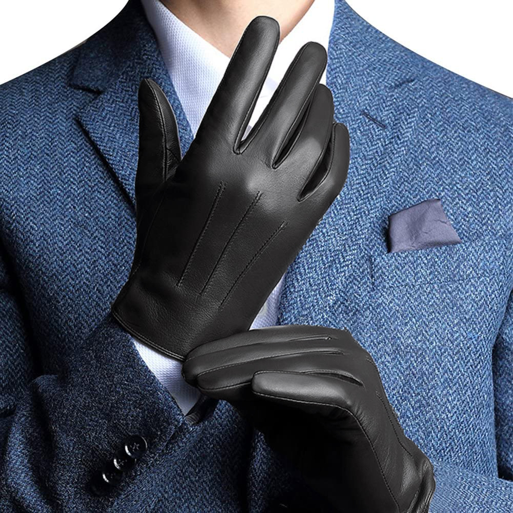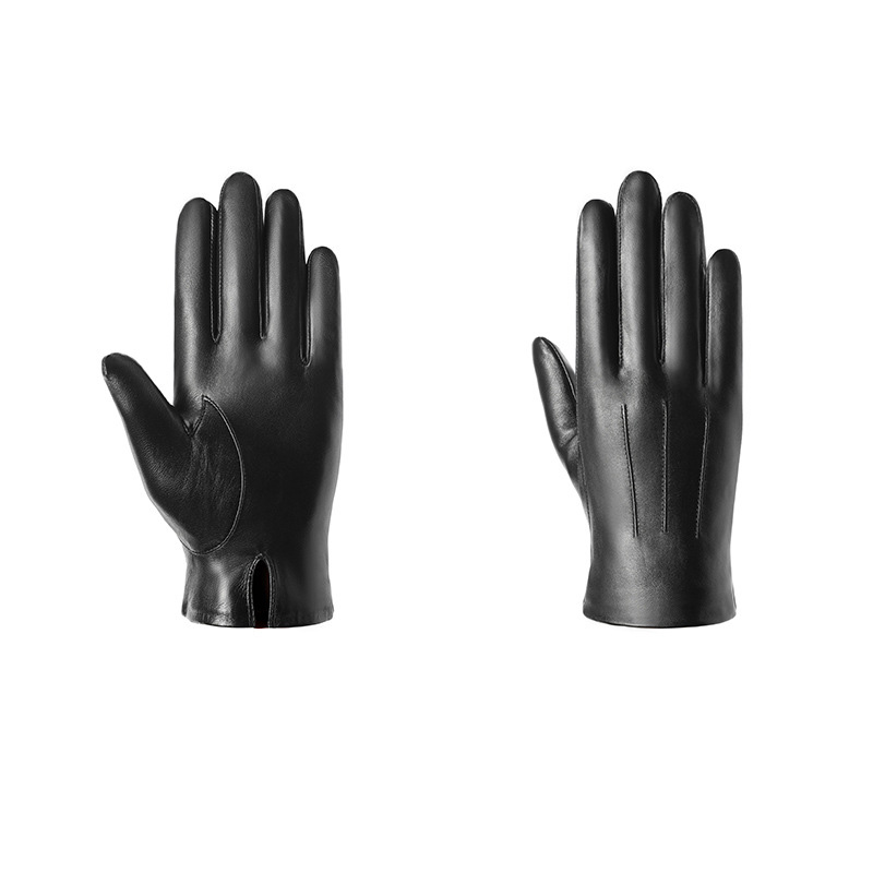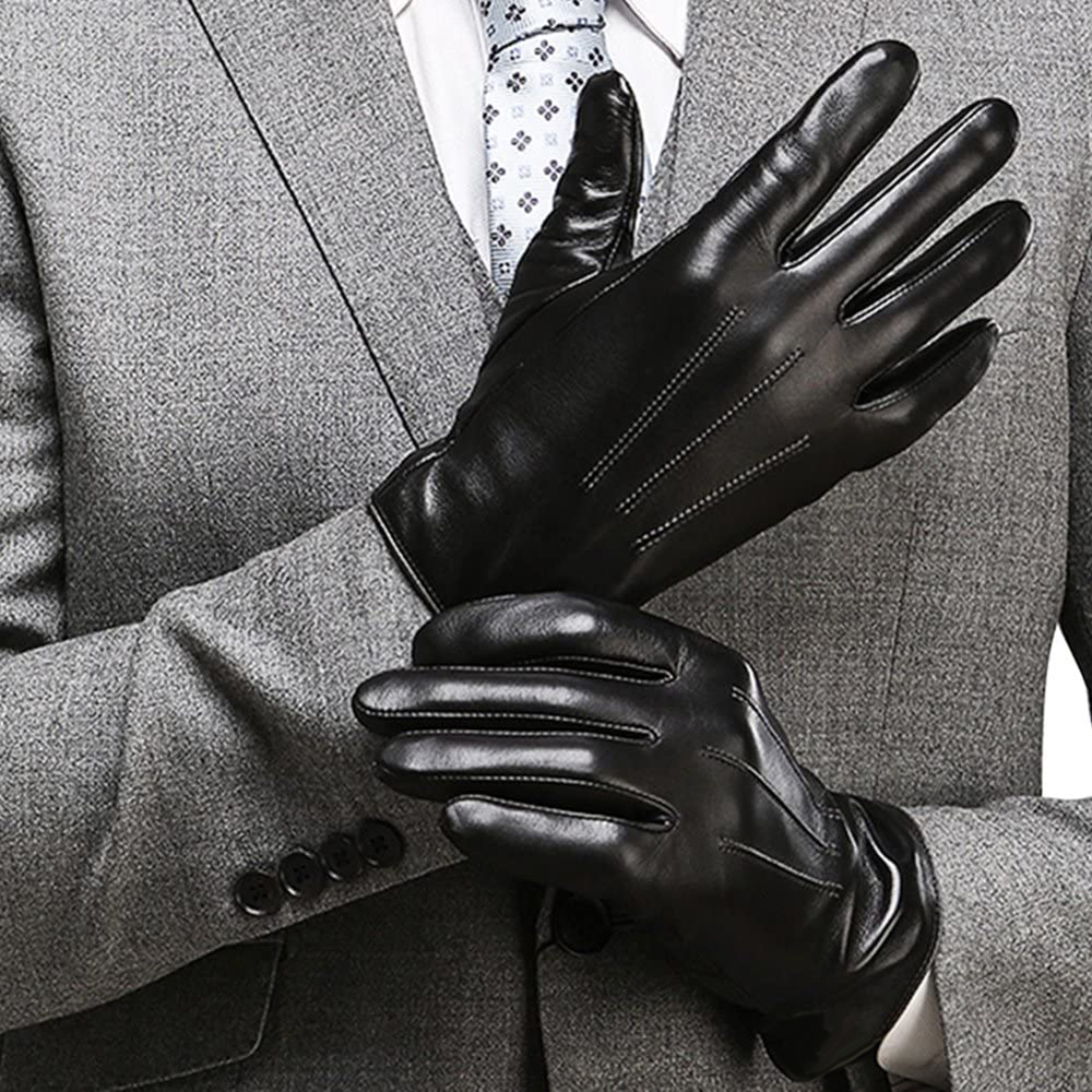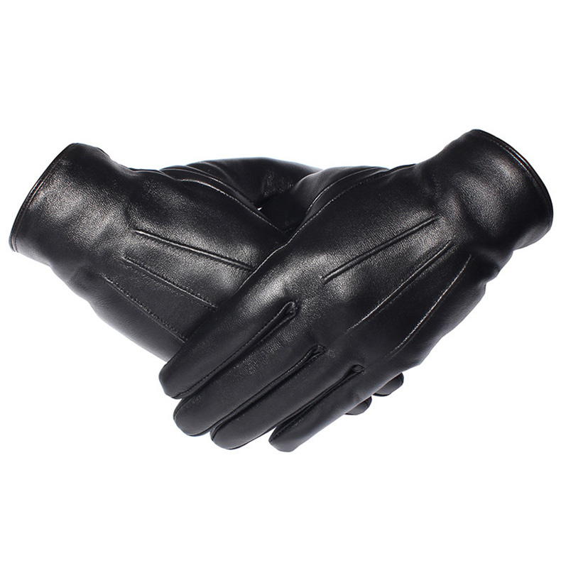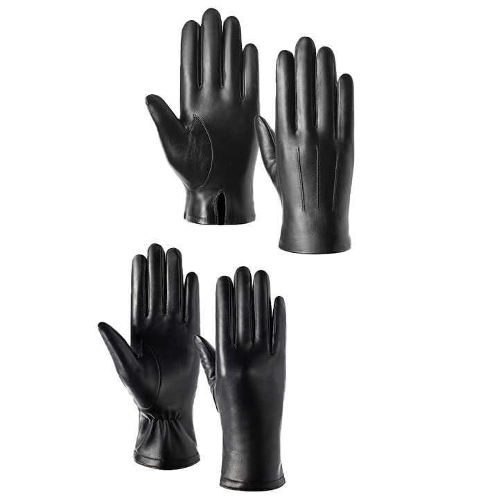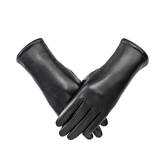 Stilige, svarte hansker i skinn for herre eller dame som holder deg varm i kulden og er et stilig tilbehør til antrekket ditt.