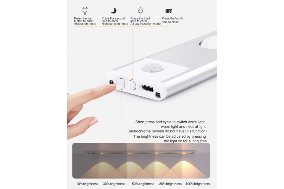 - 3 LED-farger å velge mellom – varm, nøytral og hvit