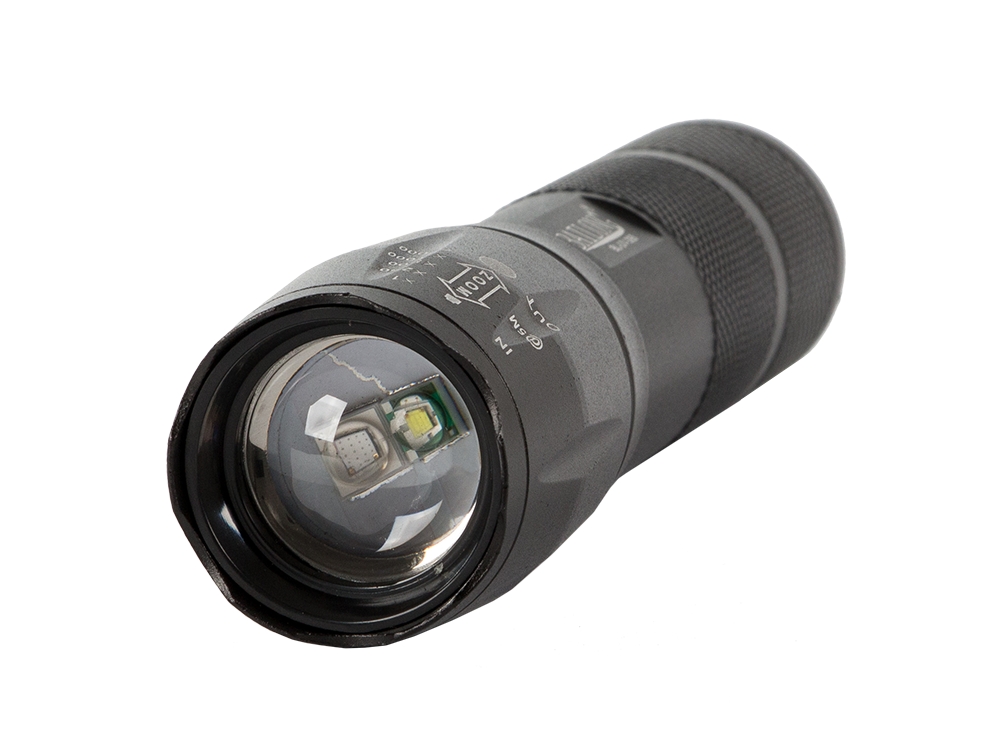 Zoomfunksjon - kontinuerlig justerbar endring av brennvidden til lyset, takket være bruk av fokuseringslinse. Dette lar deg justere fra en smal sterk lysstråle med lang rekkevidde på 300m til et bredt felt som lyser opp et stort arbeidsområde. Disse egenskapene gjør lommelykten utrolig egnet for alle typer terreng.