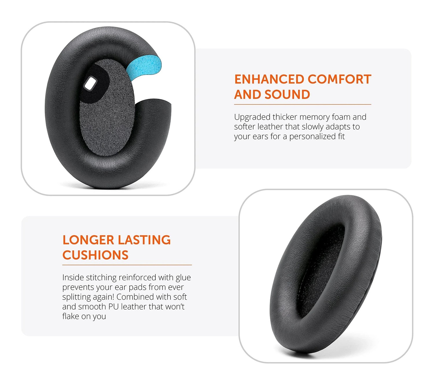 Den myke overflaten føles behagelig mot huden, selv under lange lyttesesjoner, og forhindrer at hodetelefonene klemmer eller gnager. Perfekte for deg som bruker hodetelefonene daglig, på reiser eller under lange gamingøkter. En rimelig måte å gjenopprette både komfort og lydopplevelse på dine hodetelefoner.