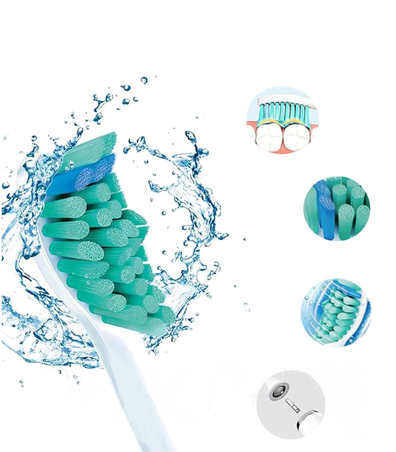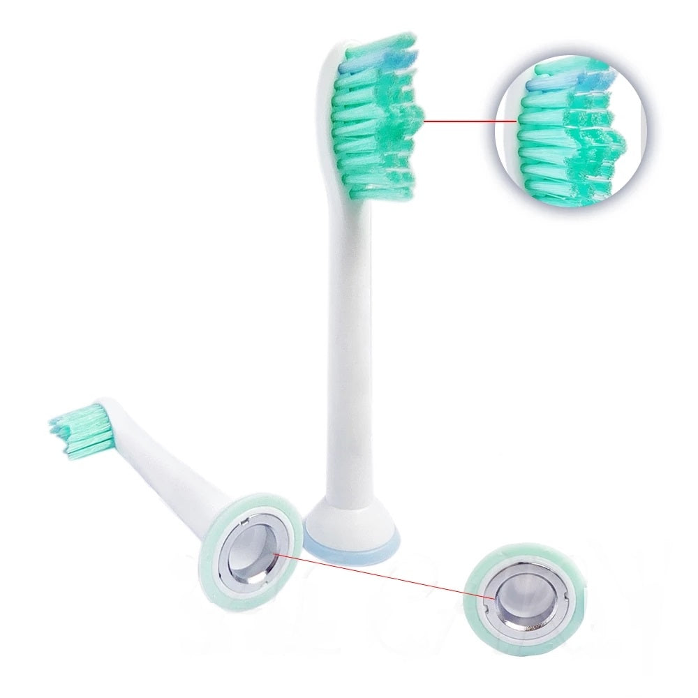 Tannbørste må byttes ofte, og nå får utskiftbare hoder til elektrisk tannbørste, 4 eller 8 stk. Hodene er myke, men faste og fleksible. De beskytter tannkjøttet mens du skånsomt fjerner plakk selv fra vanskelig tilgjengelige områder.